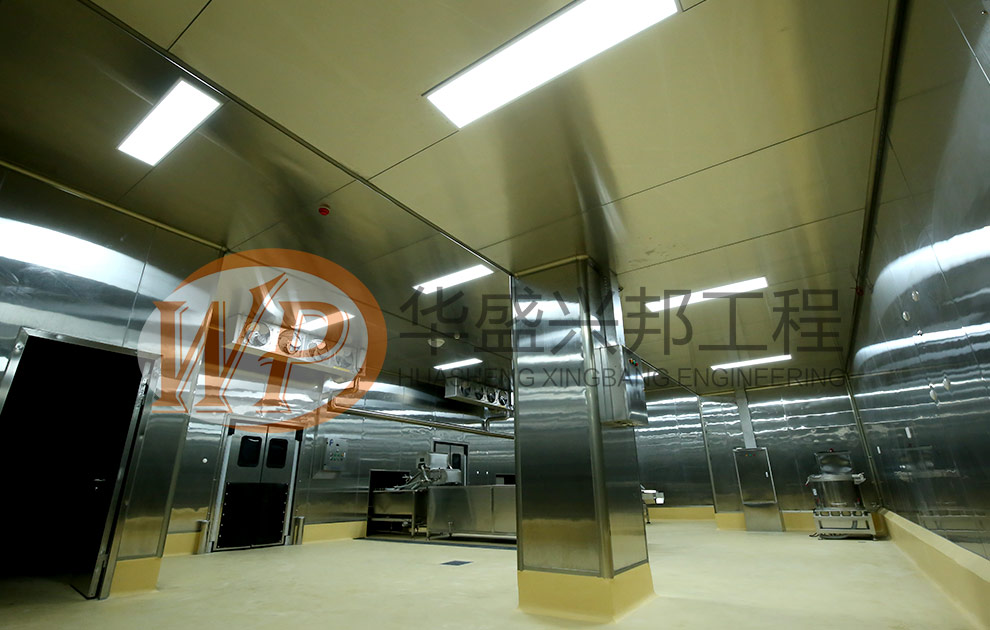 項目介紹:該中央廚房生產(chǎn)車間是雙面不銹鋼中控玻鎂板,地面為聚氨酯砂漿地坪