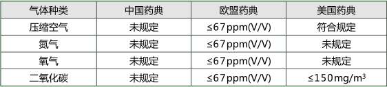 中國藥典、歐盟藥典、美國藥典中有關(guān)于壓縮空氣、氮?dú)狻⒀鯕狻⒍趸嫉葰怏w的一些指標(biāo)規(guī)定,但是這些是針對(duì)醫(yī)用氣體的,對(duì)于制藥過程中的工藝氣體不是很適用,但是可為用戶在確定工藝氣體的質(zhì)量標(biāo)準(zhǔn)時(shí)提供參考,在這藥廠設(shè)計(jì)的時(shí)候要非常注意。