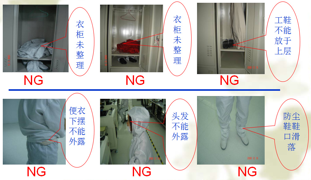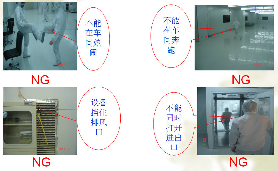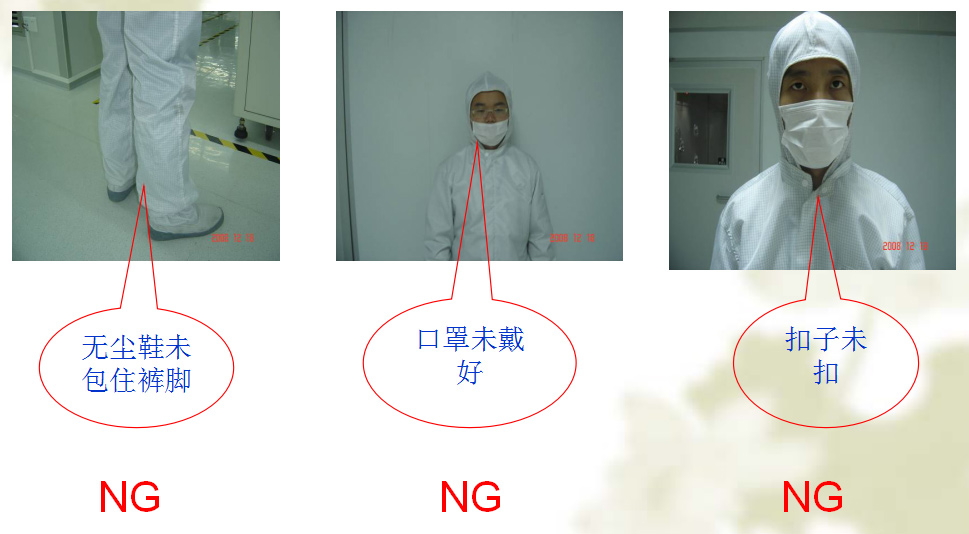 4、未經(jīng)管理人員批準,無塵服有明顯污染和破損的人員禁止進入無塵室;