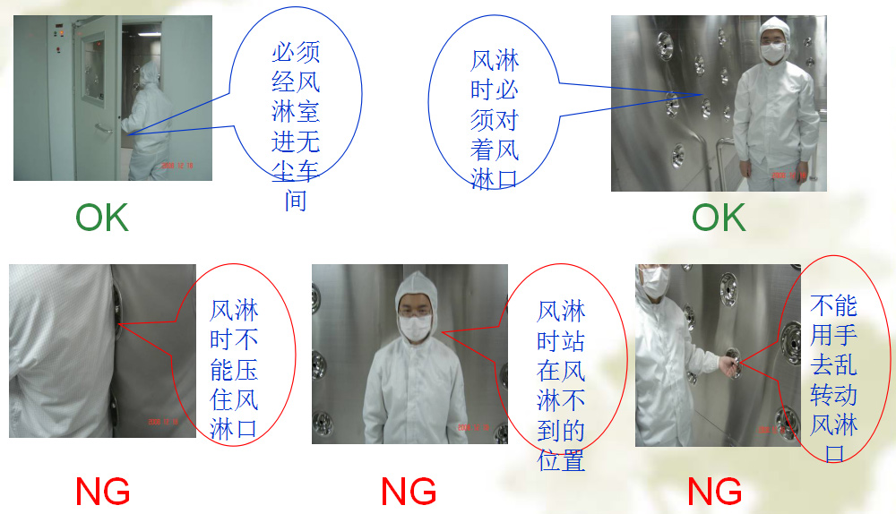1、所有人員必須經(jīng)過風淋方可進入無塵室;