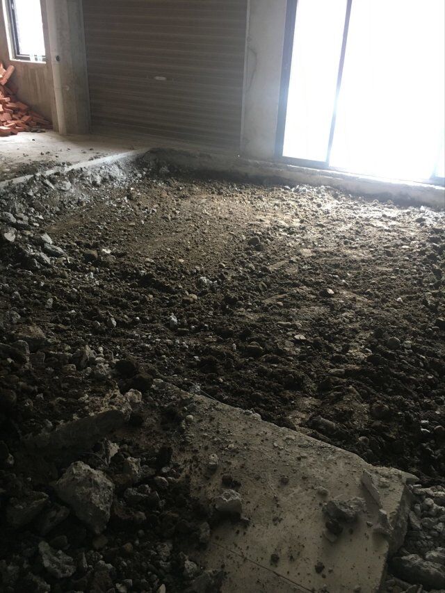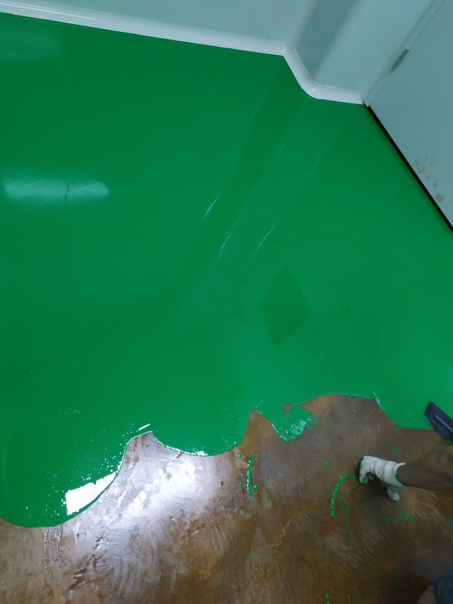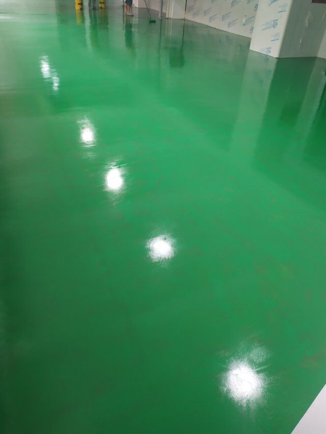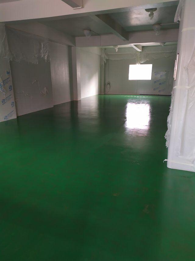 四川美料美味食品科技有限公司廠房裝修現(xiàn)場(chǎng),地坪施工中