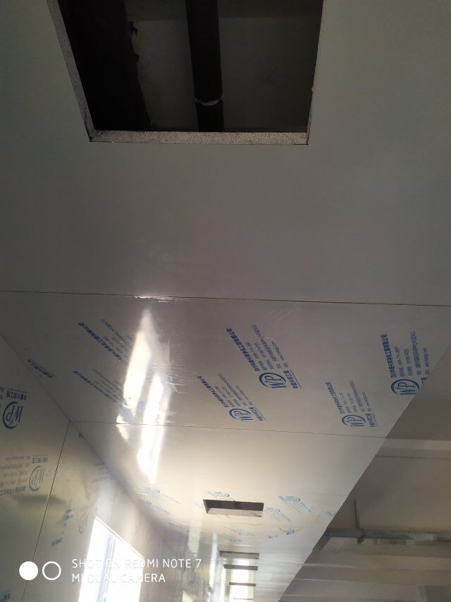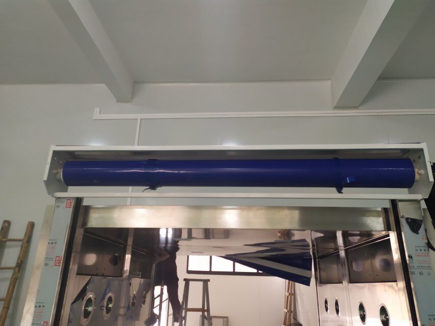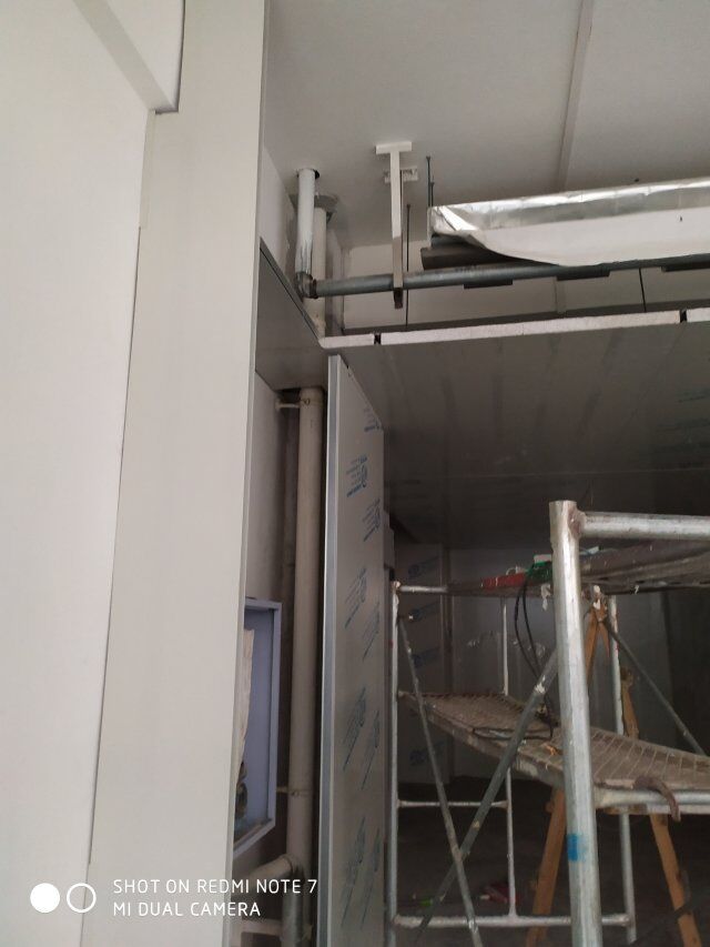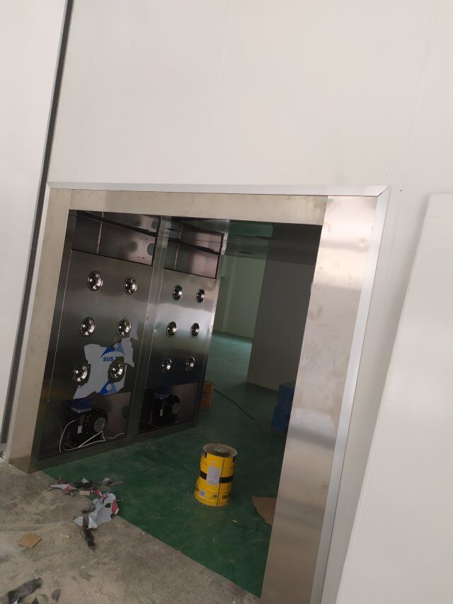 四川美料美味食品科技有限公司廠房裝修現(xiàn)場(chǎng),風(fēng)淋室調(diào)試安裝完成,板材包邊完成