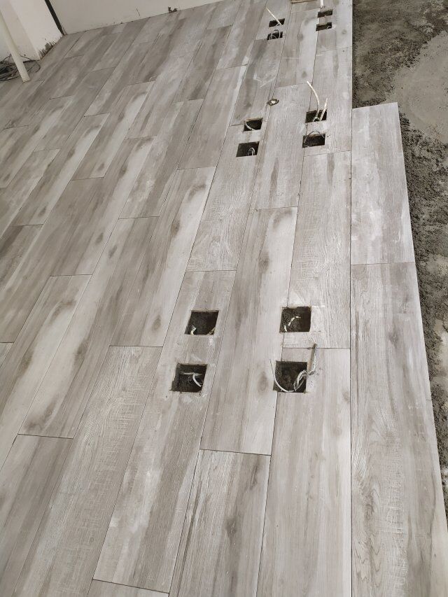 現(xiàn)場(chǎng)地坪施工,辦公室貼磚