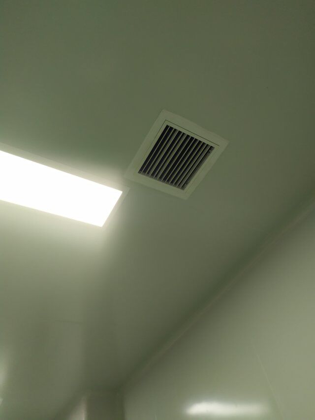 四川美料美味食品科技有限公司廠房裝修現(xiàn)場(chǎng),排風(fēng)扇安裝,衛(wèi)生間裝修完成