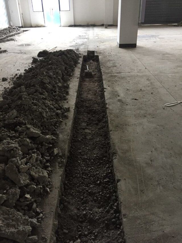 四川憨憨豆匠食品有限公司二期廠房裝修現(xiàn)場,線管施工,地坪開始施工中