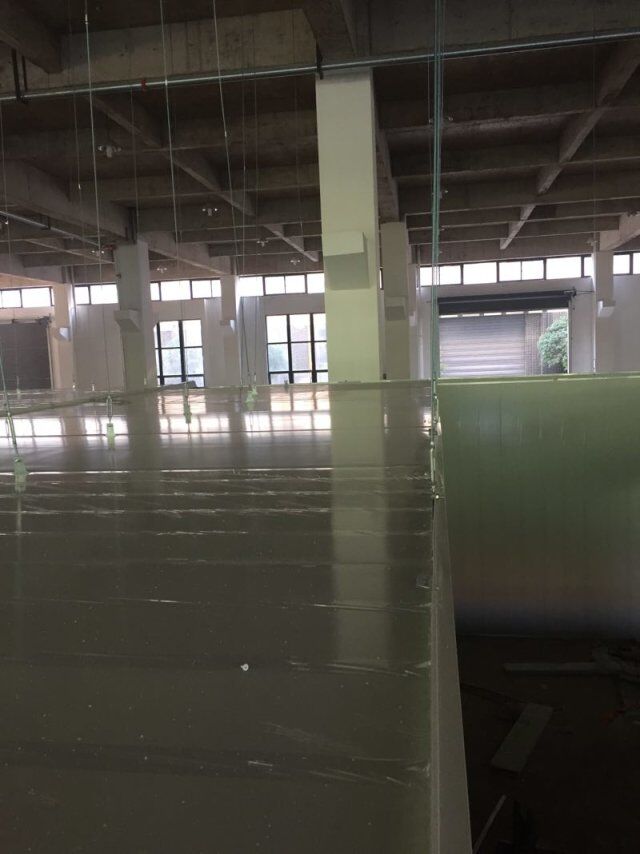 四川憨憨豆匠食品有限公司二期廠房裝修現(xiàn)場,撕保護(hù)膜,地坪施工
