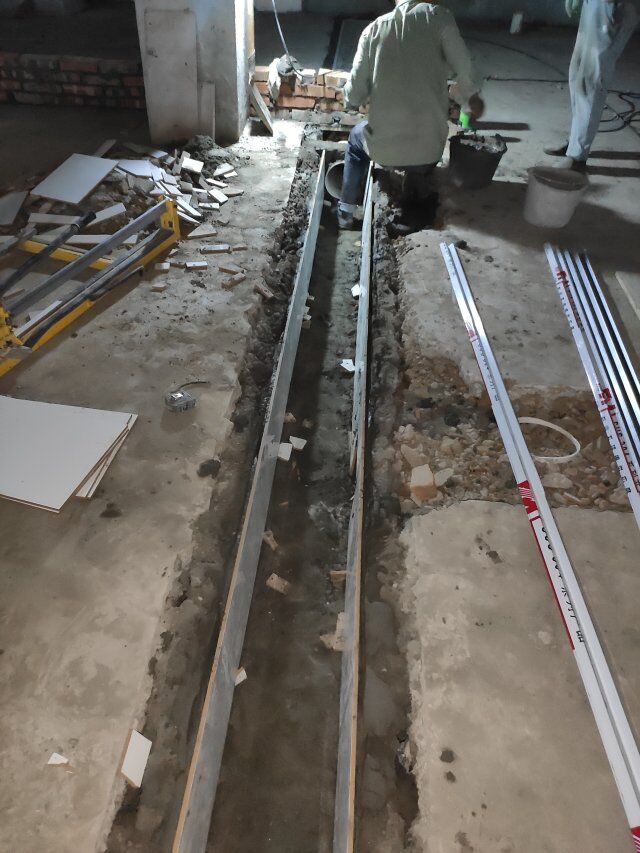現(xiàn)場立墻板,打地槽