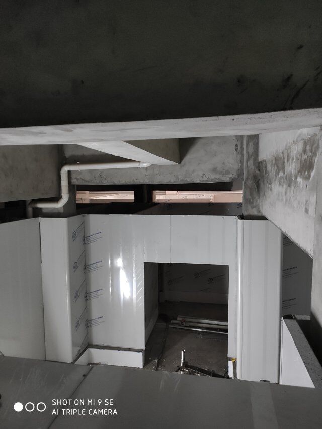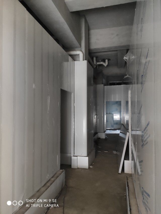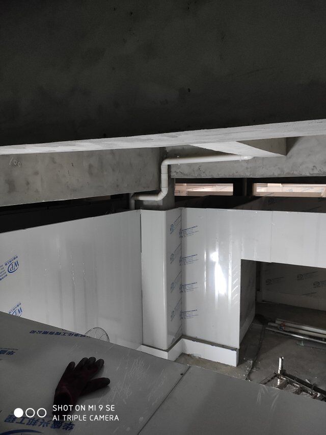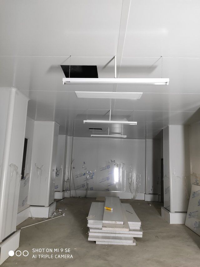 四川王臻王牛肉有限公司廠房裝修現(xiàn)場,包柱子,現(xiàn)場吊頂板