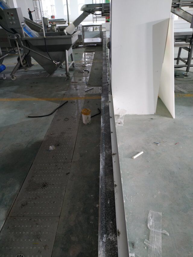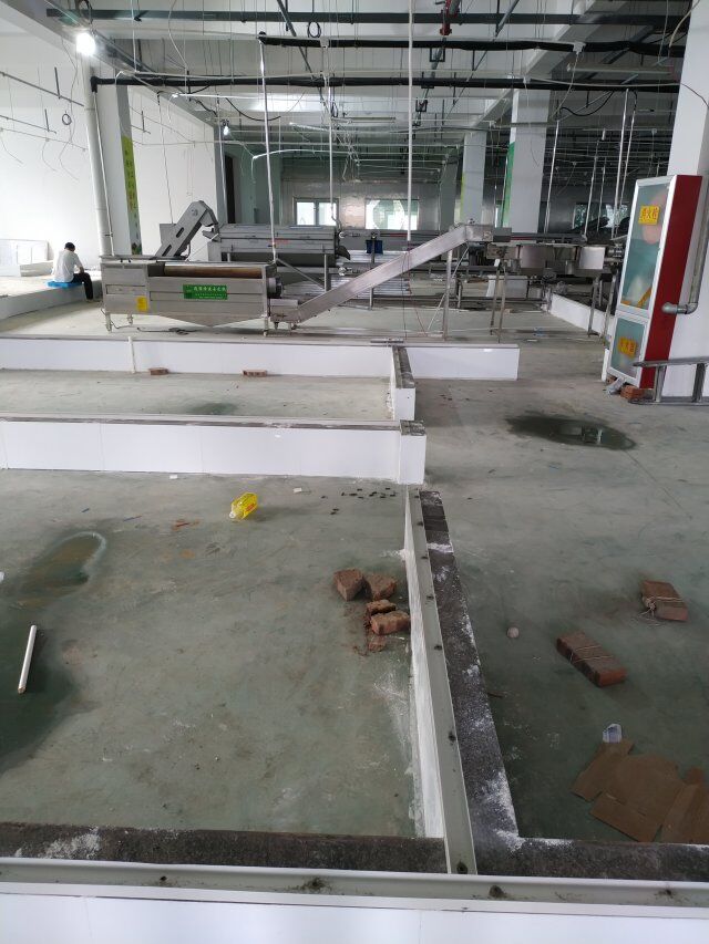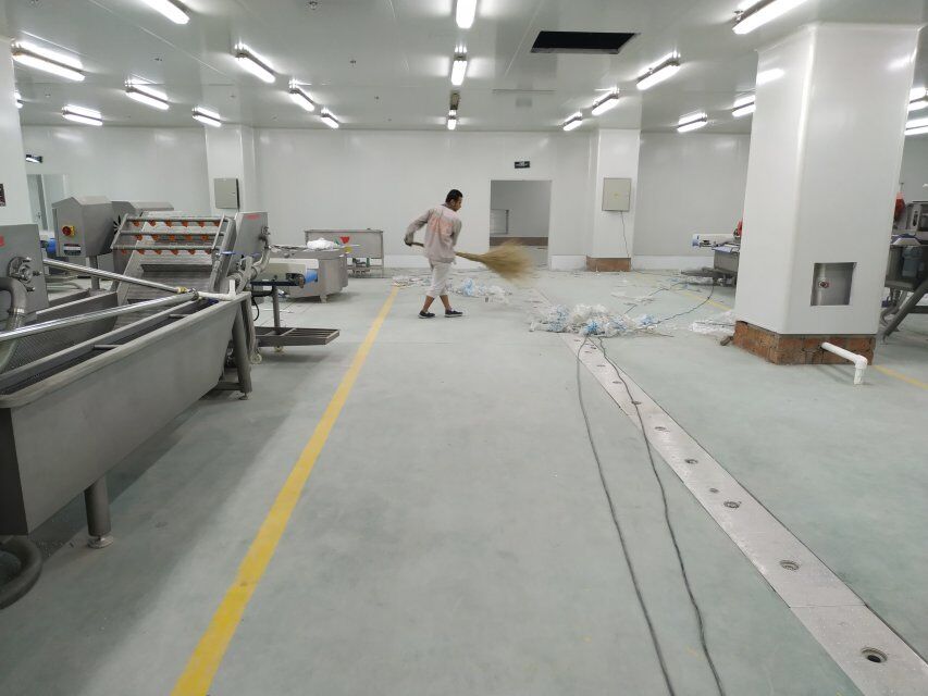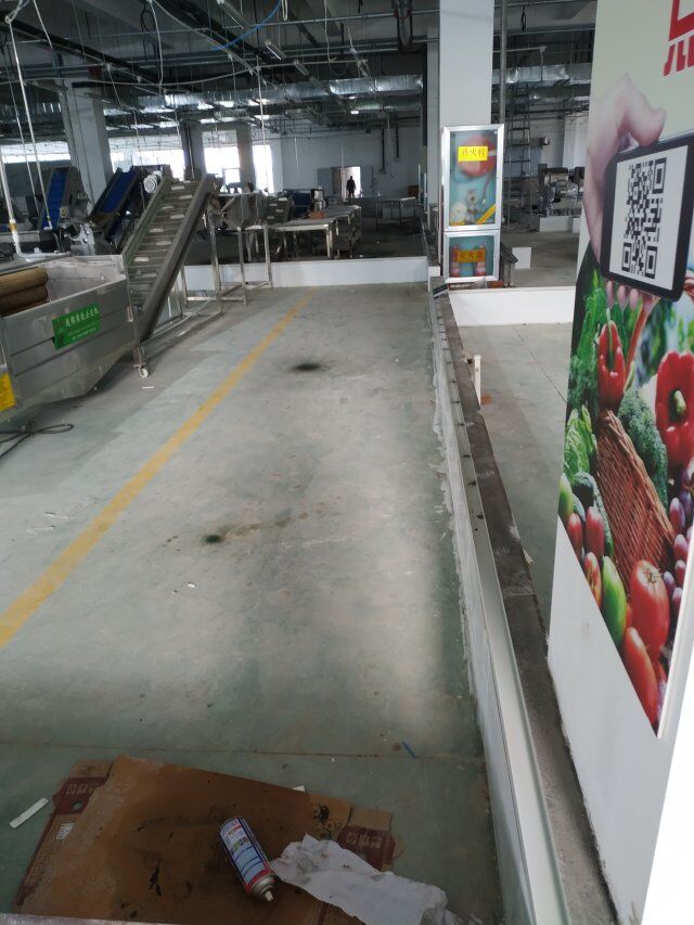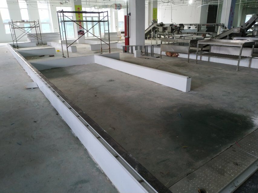 青島盛客隆食品有限公司廠房裝修現場,洗消池安裝,撕膜完成