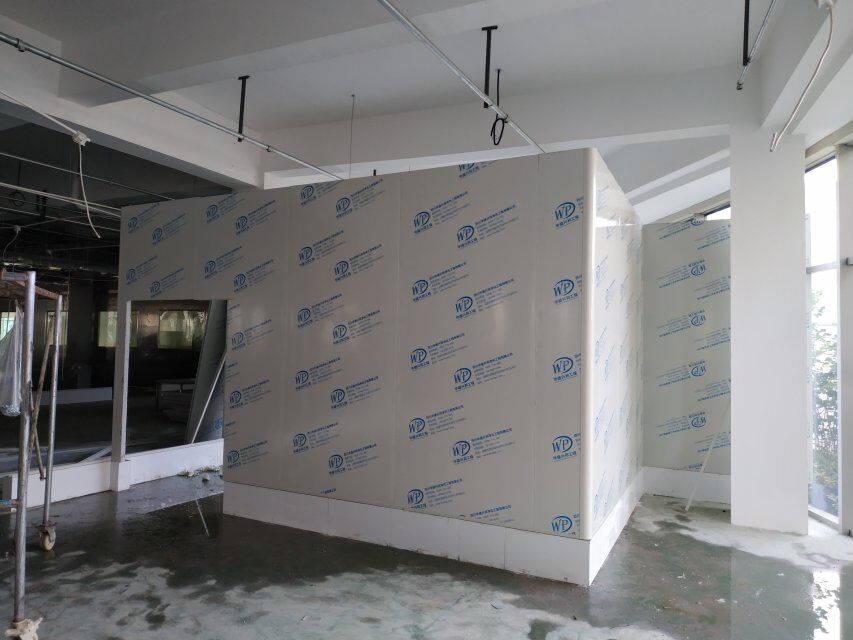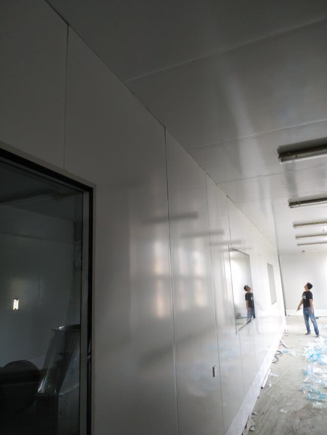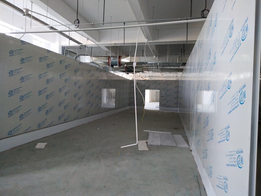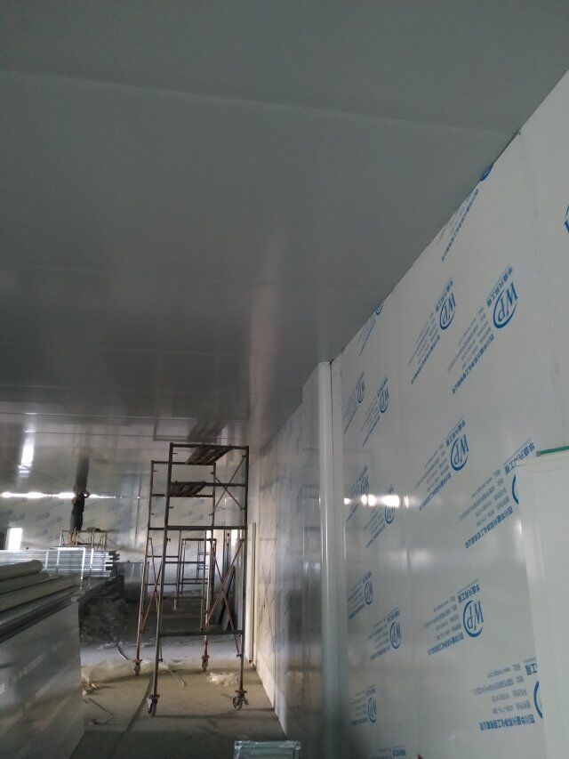 青島盛客隆食品有限公司廠房裝修現場,頂板,墻面施工