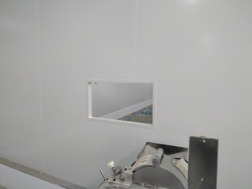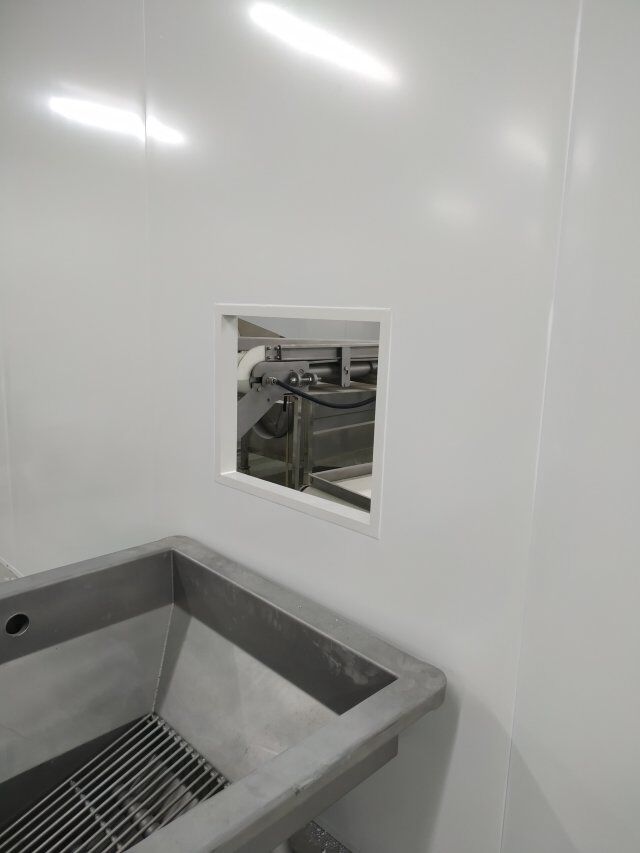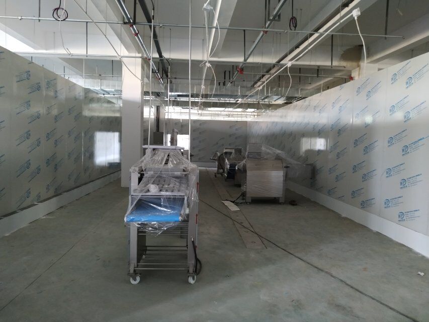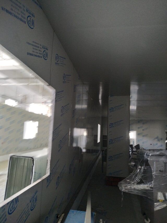 青島盛客隆食品有限公司廠房施工現場,圓弧安裝,設備傳送口施工完成