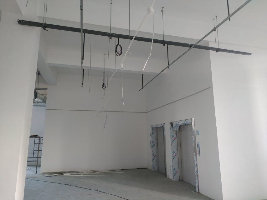 青島盛客隆食品有限公司廠裝修,吊筋安裝完成,墻板開孔