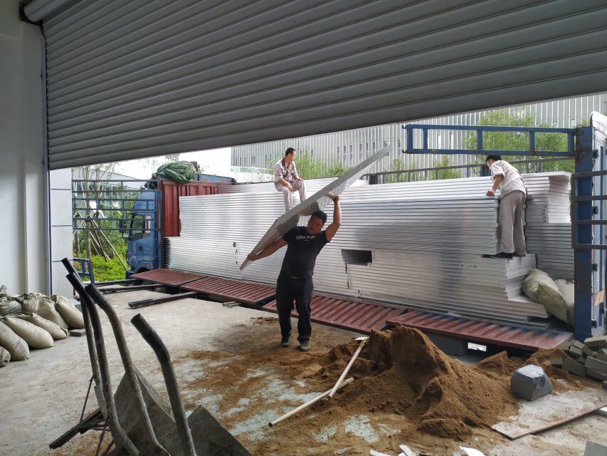 青島盛客隆食品有限公司廠房裝修現場,吊頂板,門安裝