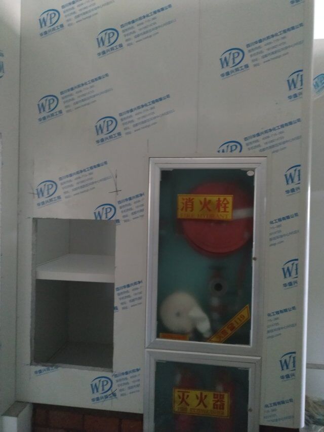 青島盛客隆食品有限公司廠房裝修現場,消防安裝,墻面開孔