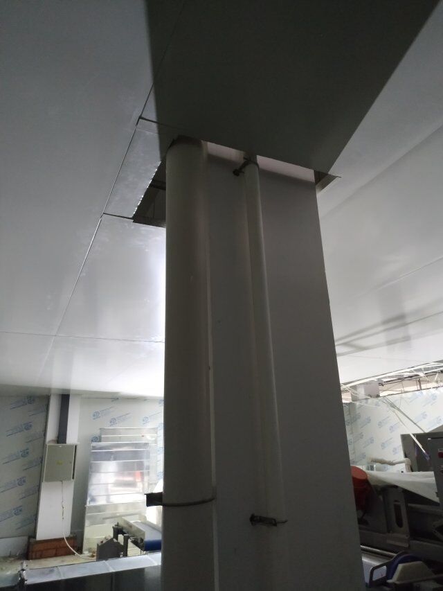 青島盛客隆食品有限公司廠裝修現場,柱子施工,吊頂板,墻板施工