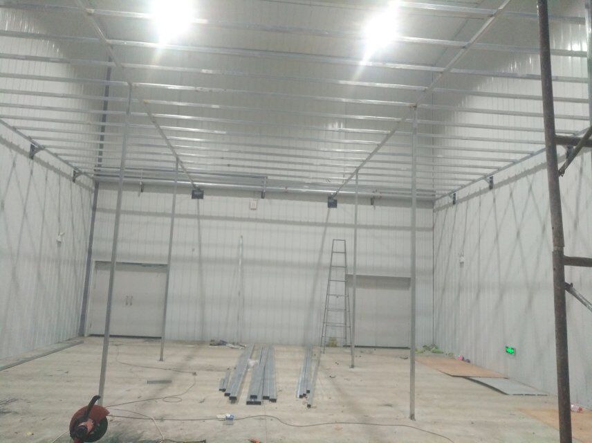 四川聚峰谷農業科技開發有限公司廠房裝修現場,地坪清理,板材開始安裝中