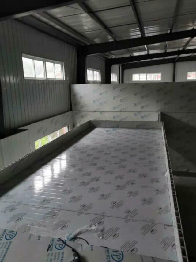 四川鄉(xiāng)巴佬農(nóng)牧集團(tuán)有限公司廠房施工現(xiàn)場(chǎng),擋水墻貼磚完成,板材到現(xiàn)場(chǎng),板材搬運(yùn)