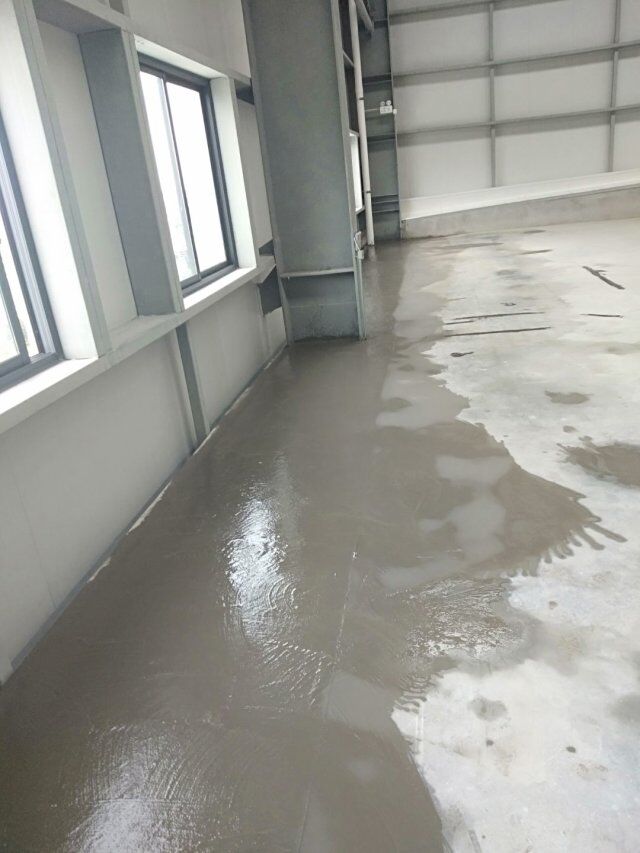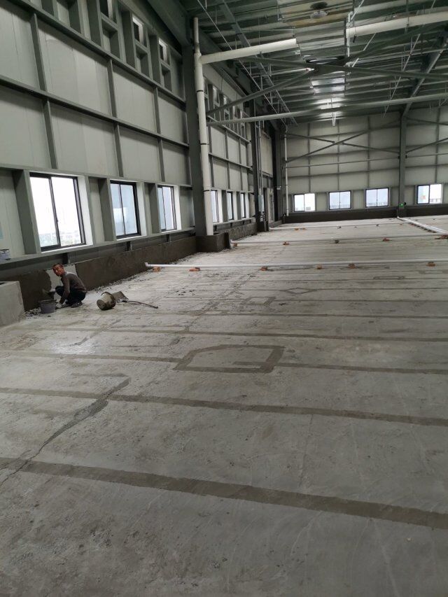 四川吉百興食品有限公司中央廚房施工現場,地坪灑水,放線