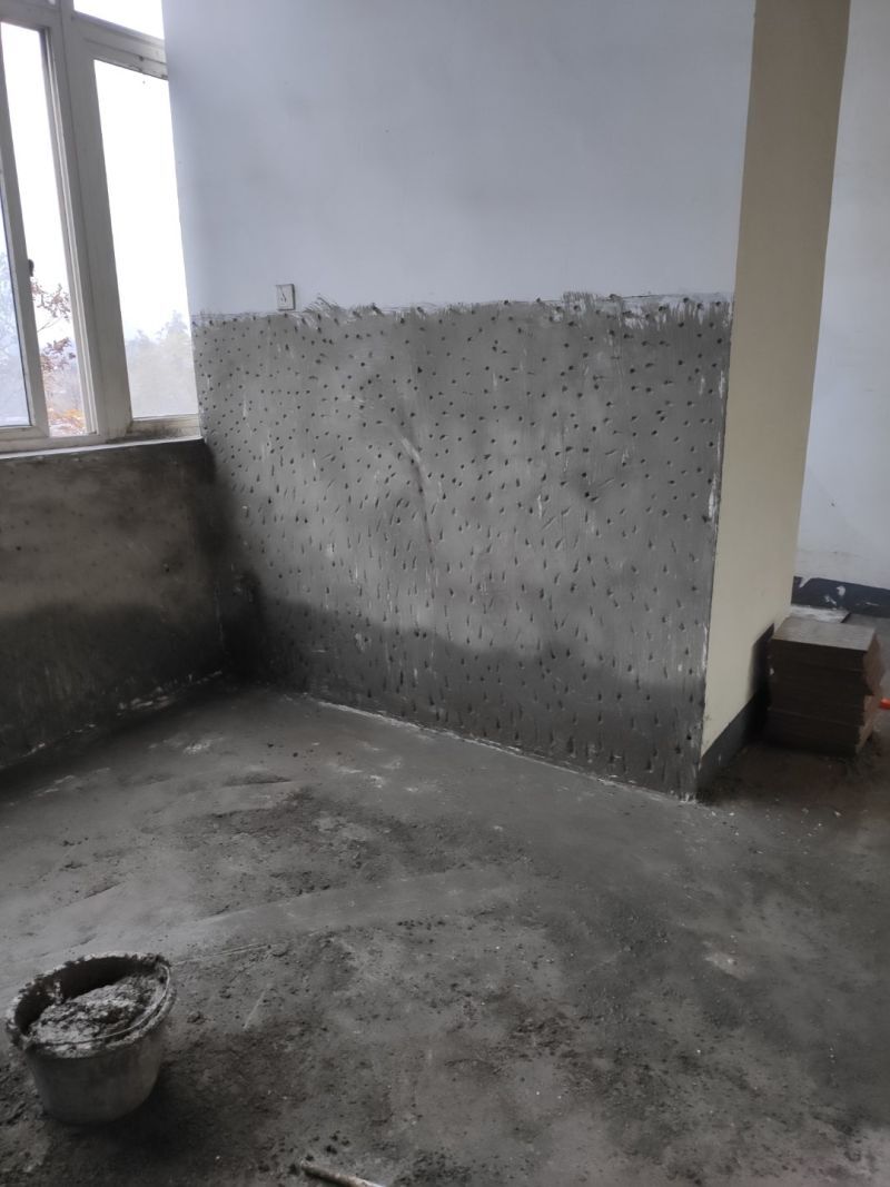 1.墻面貼磚完成 2.擋水墻貼磚完成 3.地面貼磚施工
