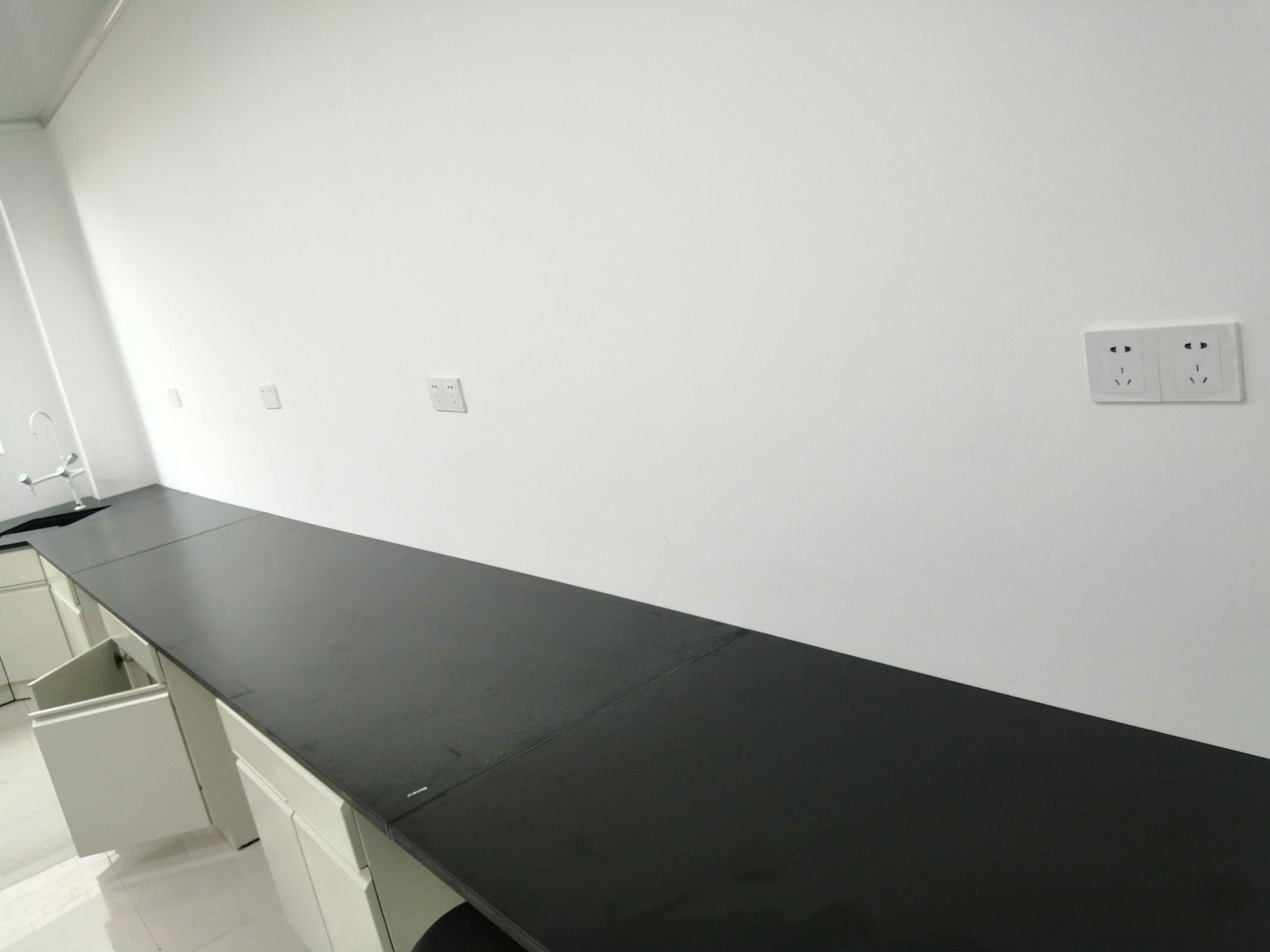 1.更衣間甲方乳膠漆完成可以安裝照明電,插座 2車間,增量封門洞一個,加寬門洞一個,車間供水發(fā)現(xiàn)一個點位有微弱寖水需處理 3.實驗室工作臺安裝完成,需要處理掉漆位置,和增加擋板。