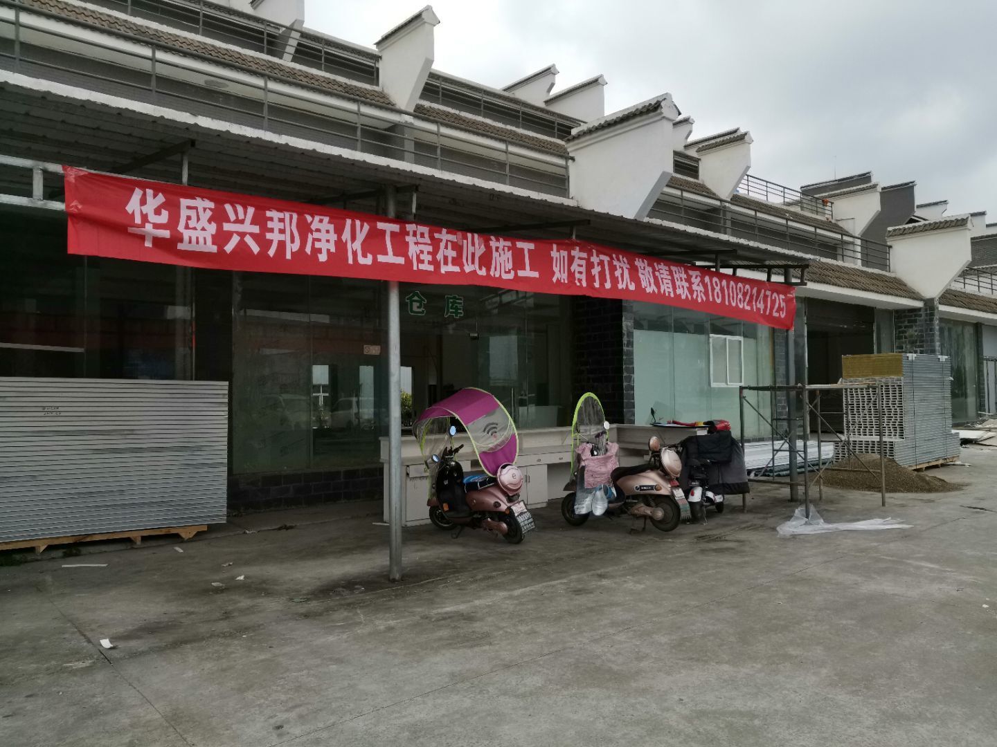 1,吊筋安裝全部完成, 2,門制作及安裝, 3,現場6s清理, 4,剩余全部彩鋼材料進場,風管及水電材料預計明日進場。