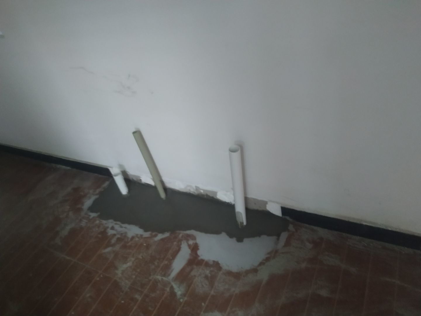 暗埋排水管和給水管地面恢復完成;門洞開洞完成;靠外墻內側墻面鏟除完成,刷界面劑完成。