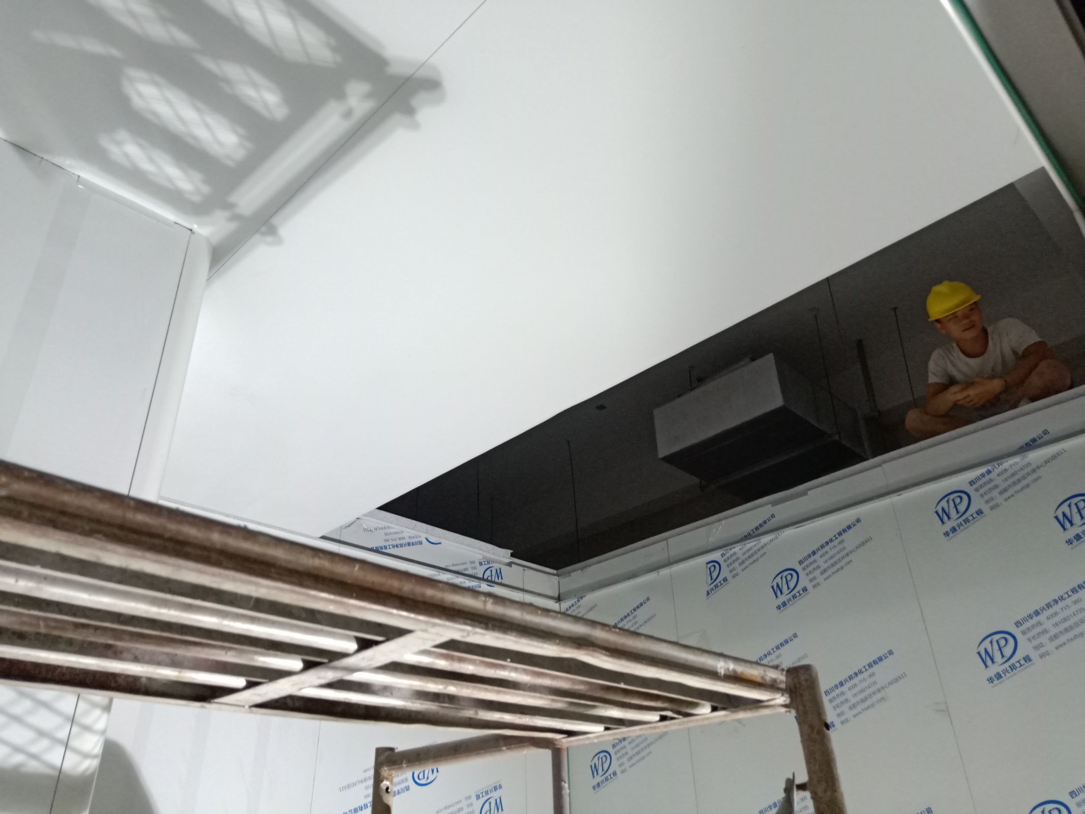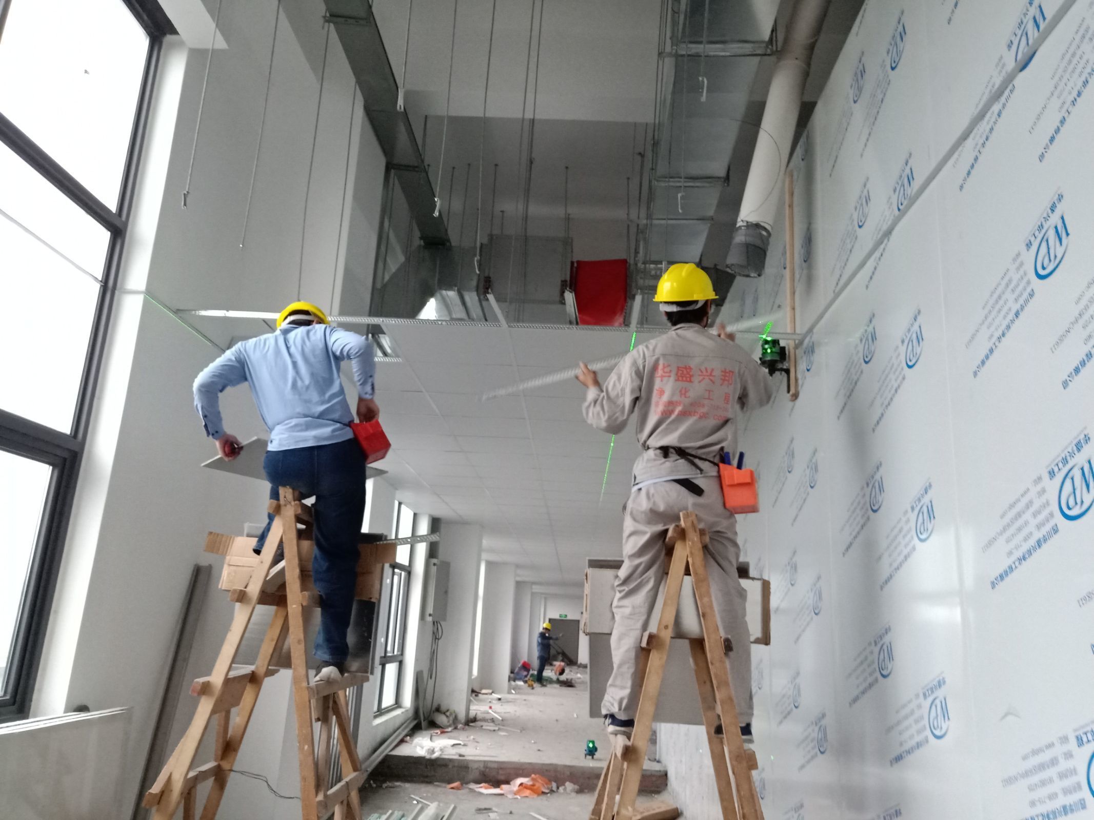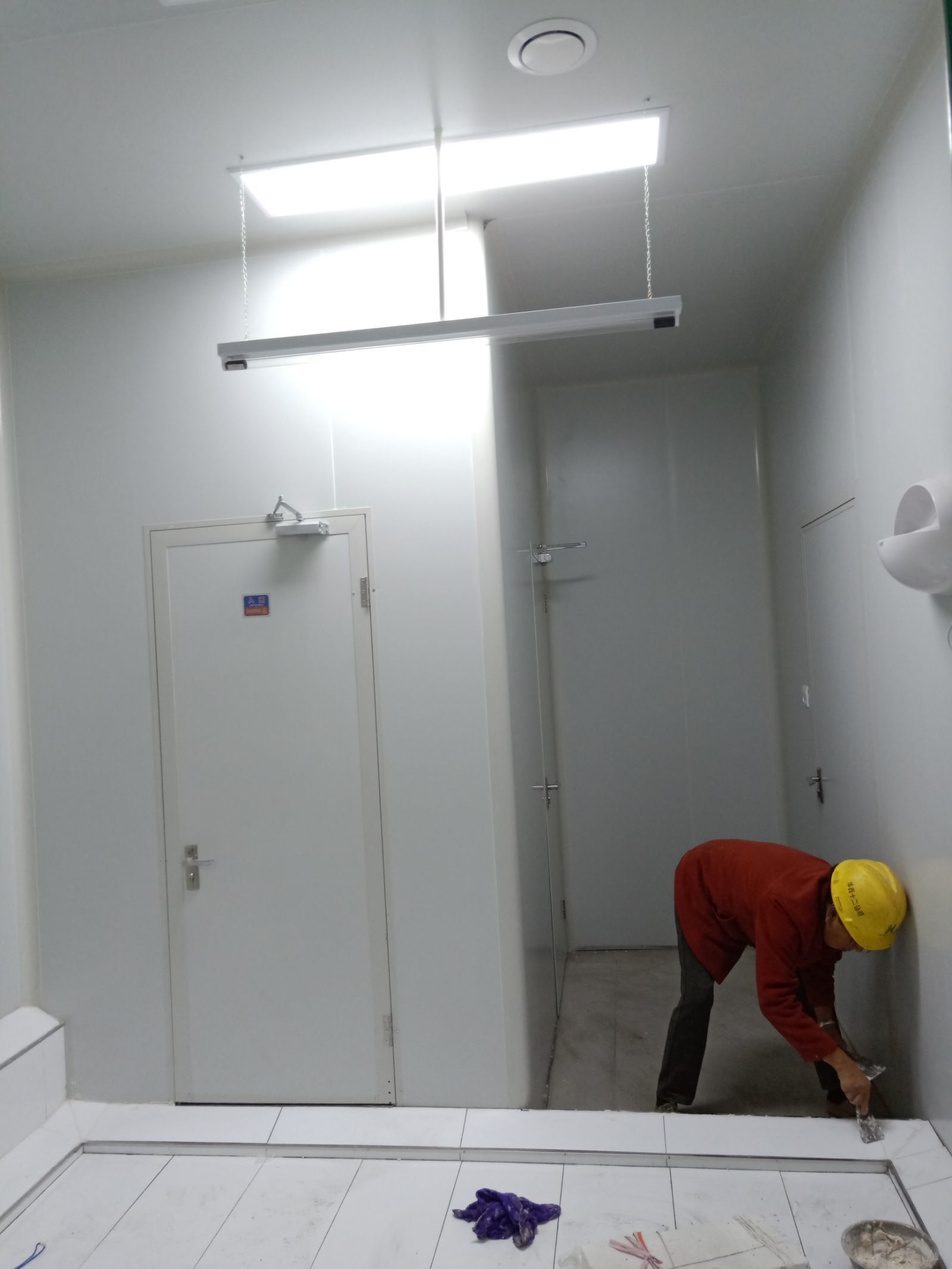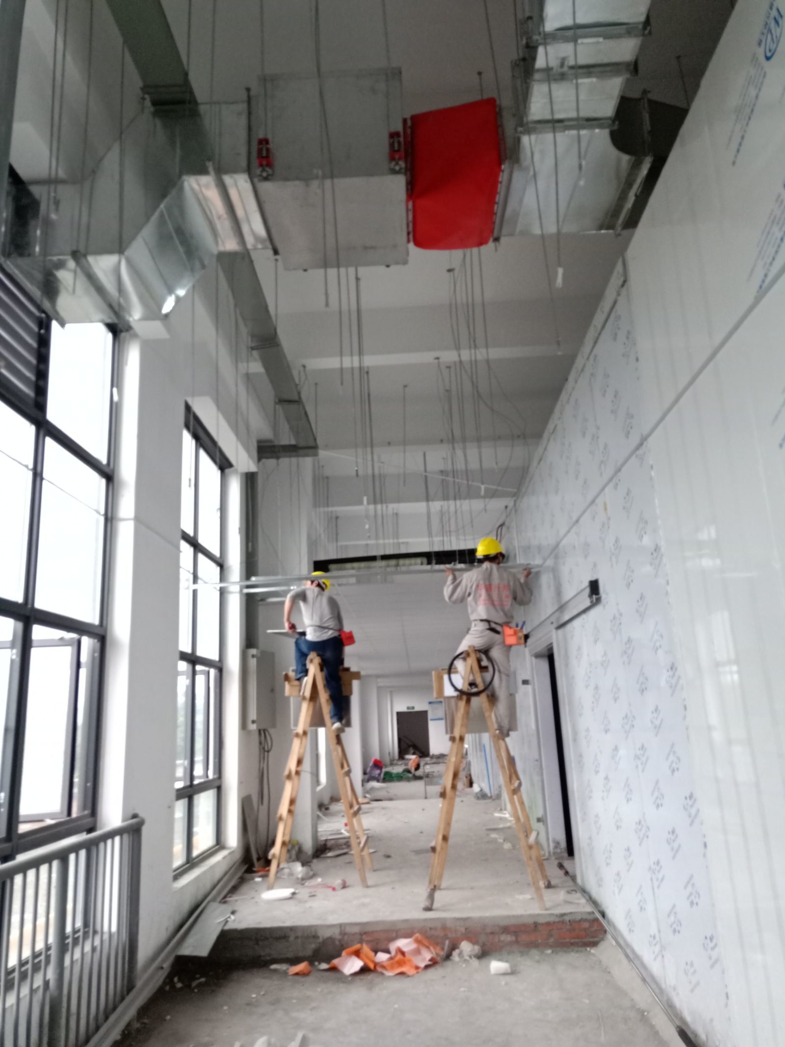 1.三防板吊頂材料到場。 2.彩鋼板吊頂材料到場,吊上樓。 3.彩鋼板吊頂完成百分之五。 4.線盒開孔完成百分之六十。 5.墻磚鋪貼完成百分之八五。 6.污水池砌磚完成百分之六十。