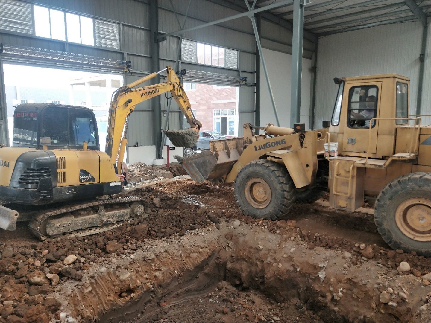 1、廠房回填建渣 2、辦公室樓承板綁扎鋼筋
