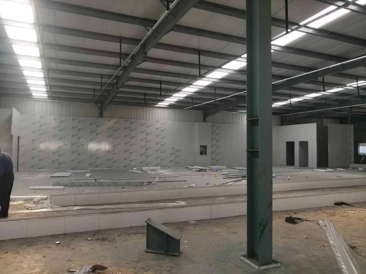 1,一樓抹灰基本完成, 2,二樓加氣塊砌筑完成40%, 3,二樓彩鋼墻板完成70%,頂板完成50%, 4,一樓水電完成90%,二樓完成15%