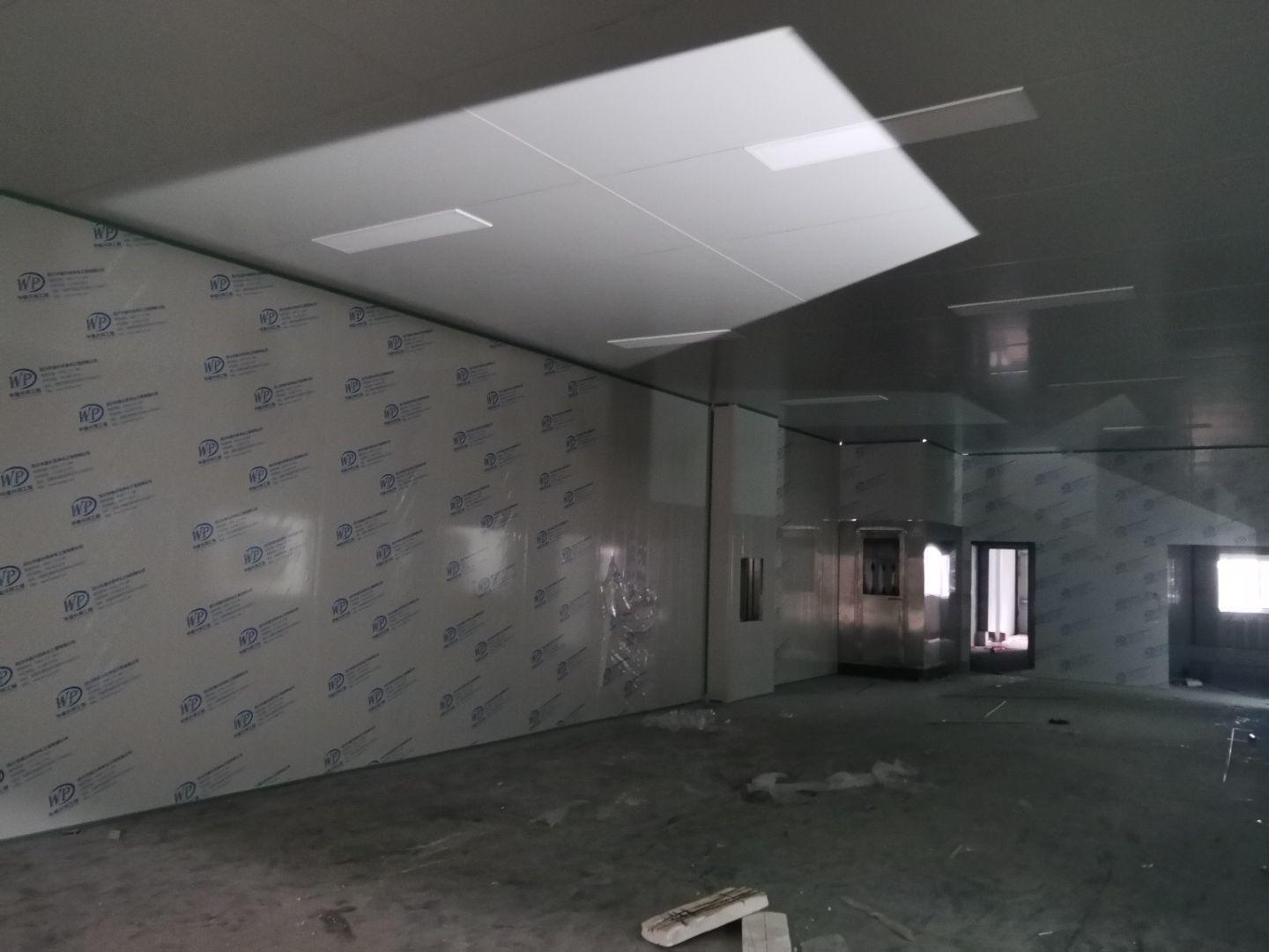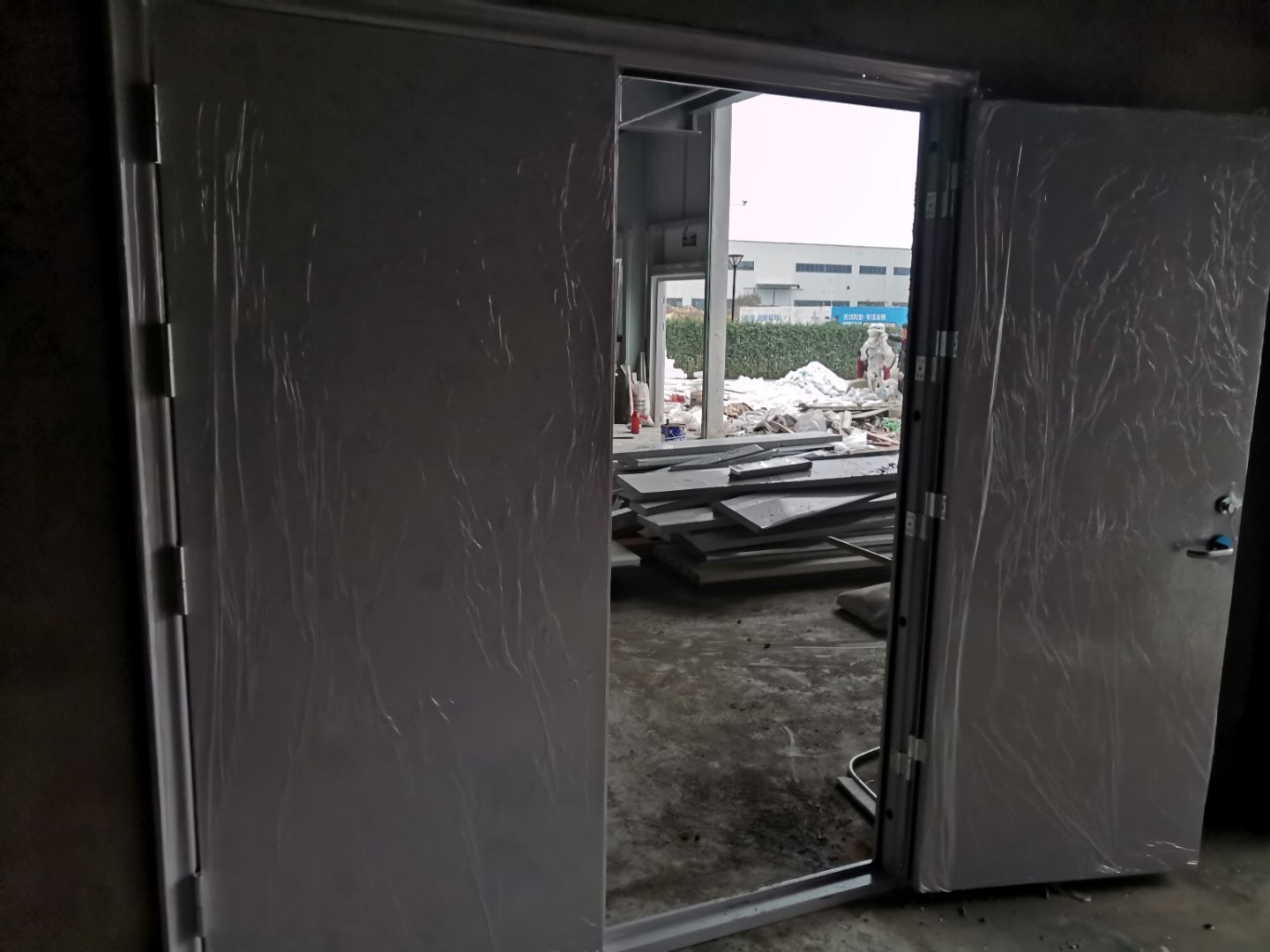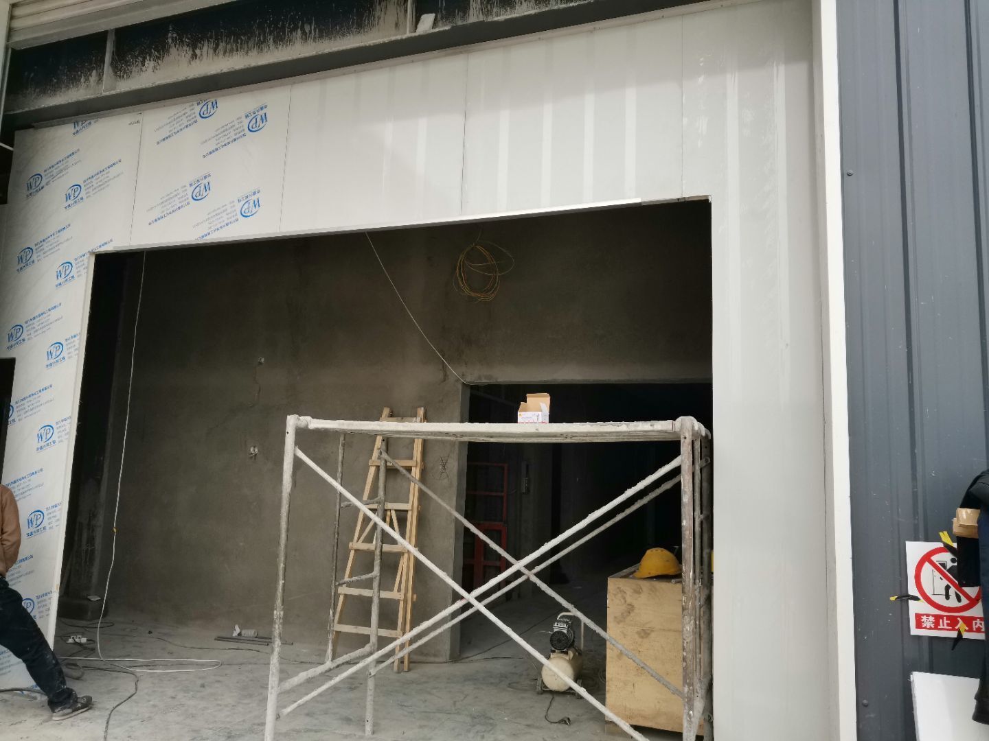 1,防火門安裝完成, 2,一樓彩鋼墻板完成90%,增項除外, 3,一樓衛生間貼磚完成50%, 4,水電安裝完成70%。