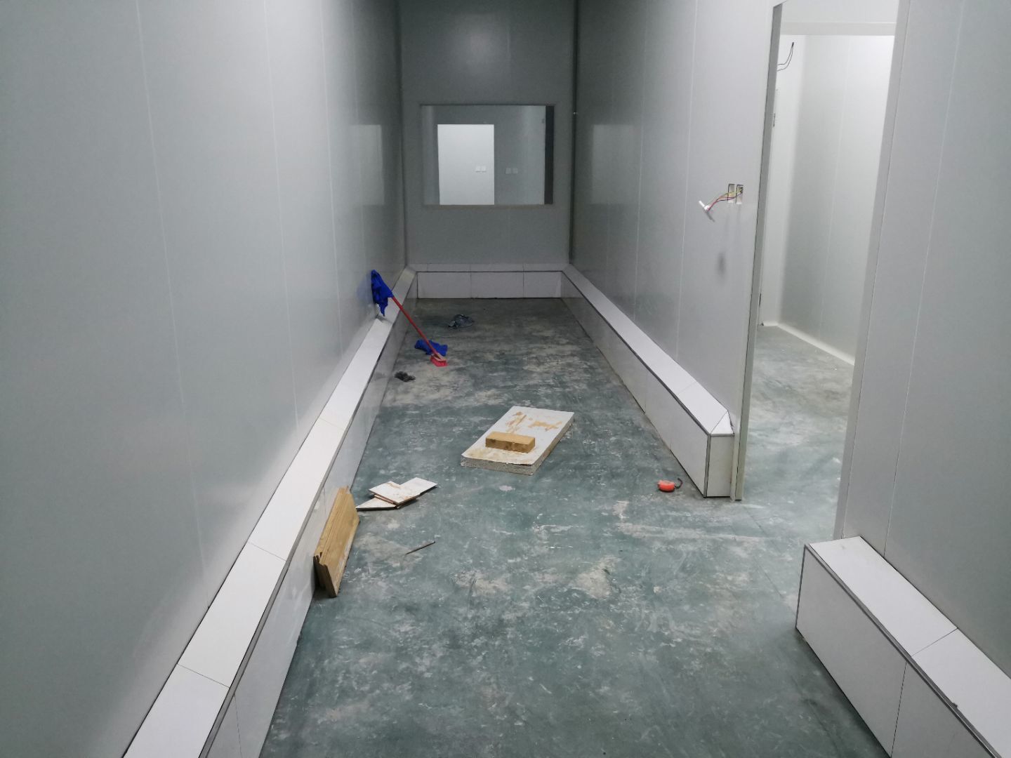 1,乳膠漆進場施工, 2,彩鋼水電收尾, 3,場地全面清理。