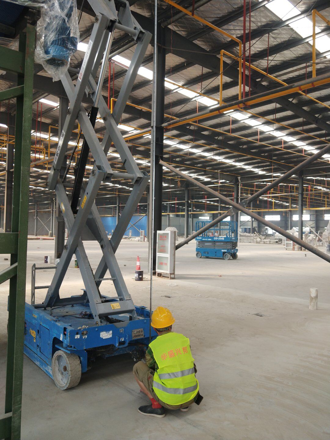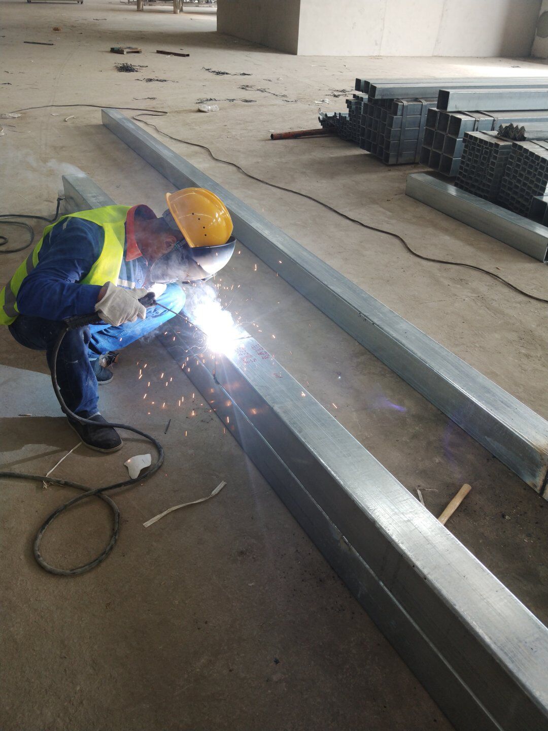 1、二次吊掛鋼構(gòu)立柱放線(xiàn)定位; 2、鋼立柱下料焊接完成,柱腳板安裝完成; 3、臨電布設(shè)完成。