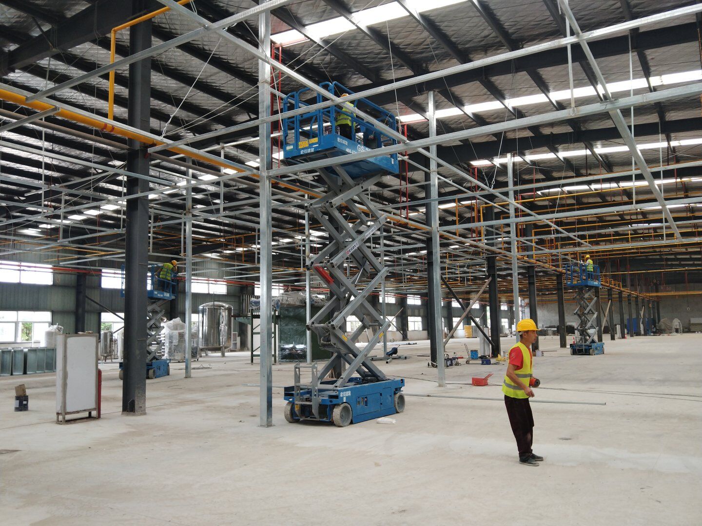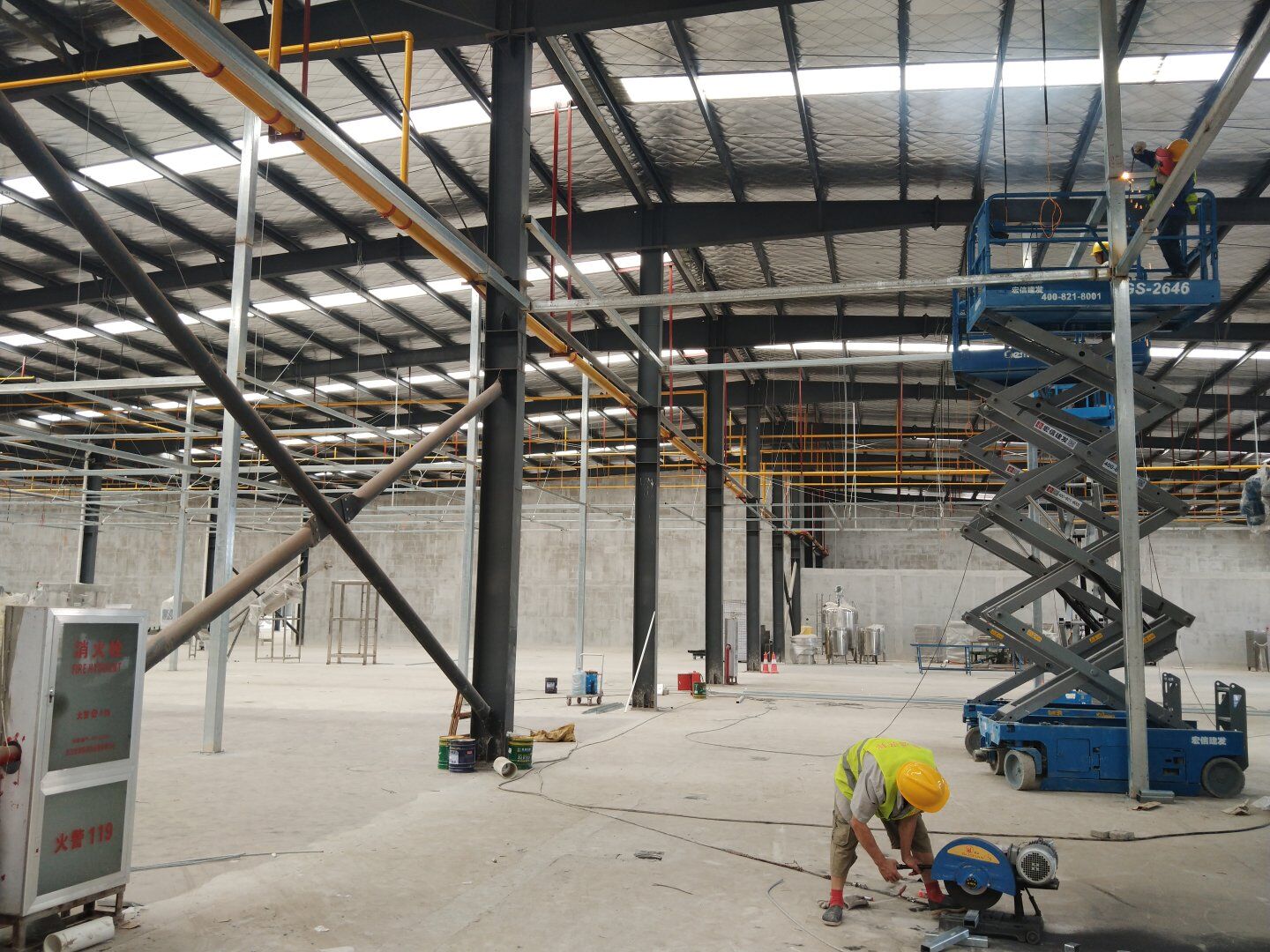 液體車(chē)間施工:1,彩鋼墻板完成60%; 2,頂板完成40%。