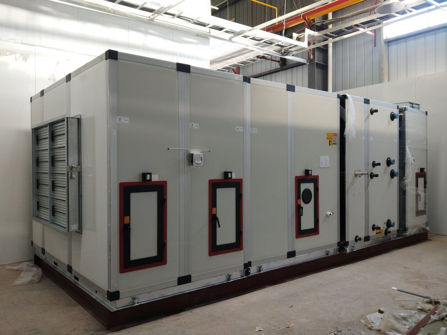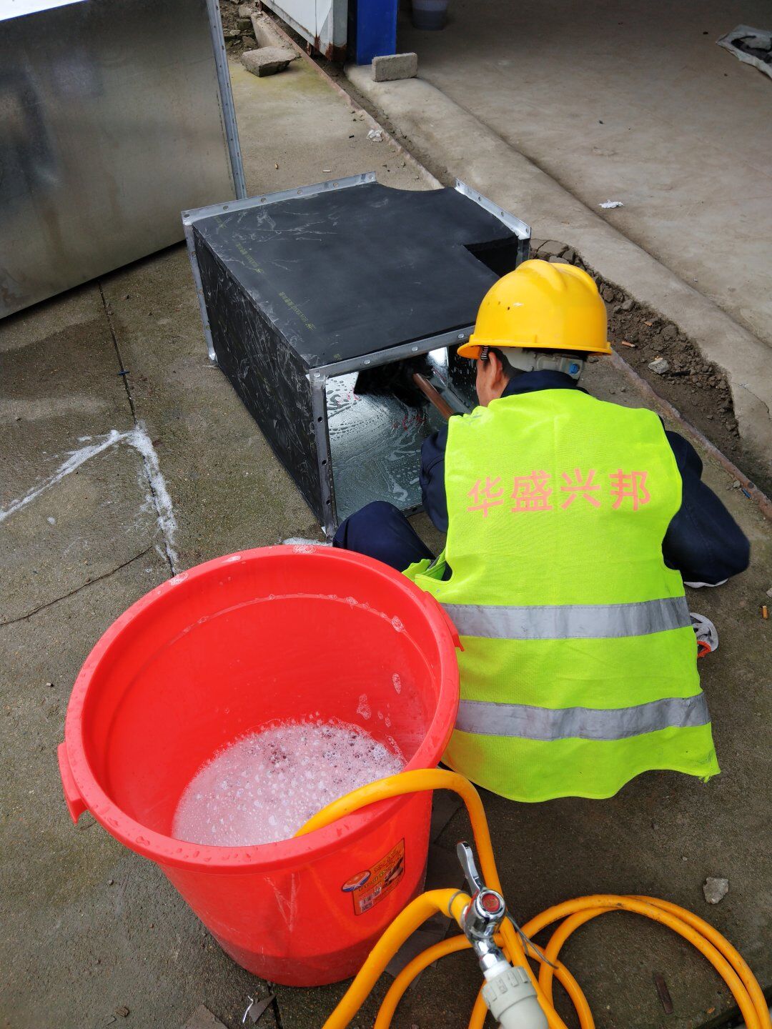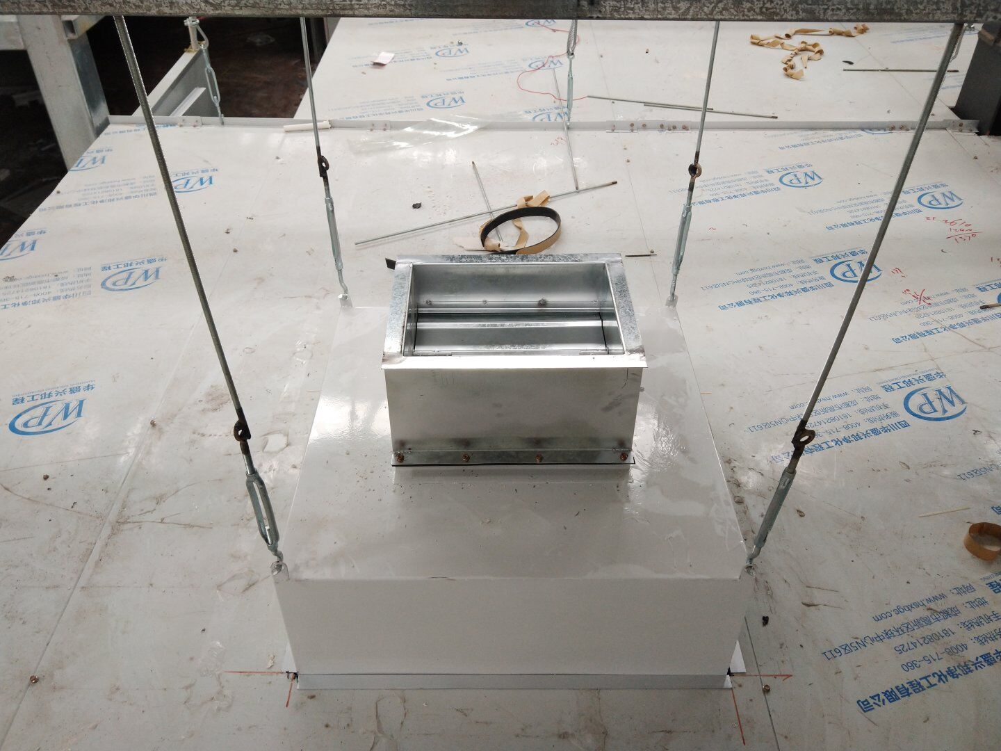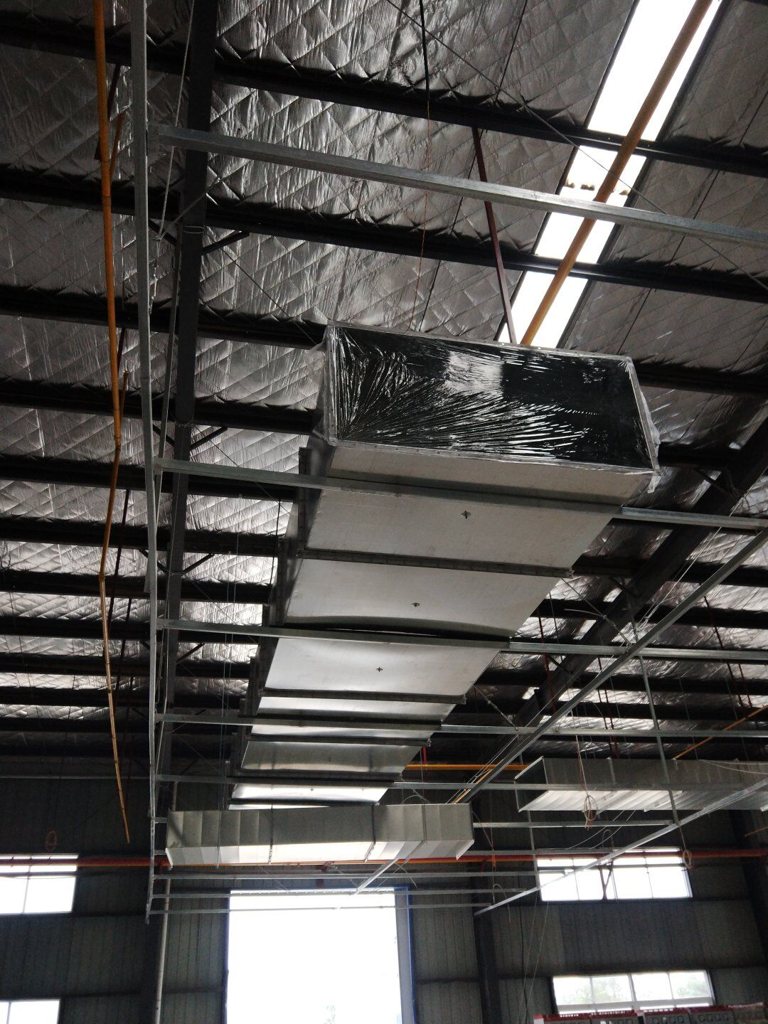 1、風(fēng)管主管半成品組裝完成; 2、風(fēng)管主管清洗,打膠密封,吊裝施工