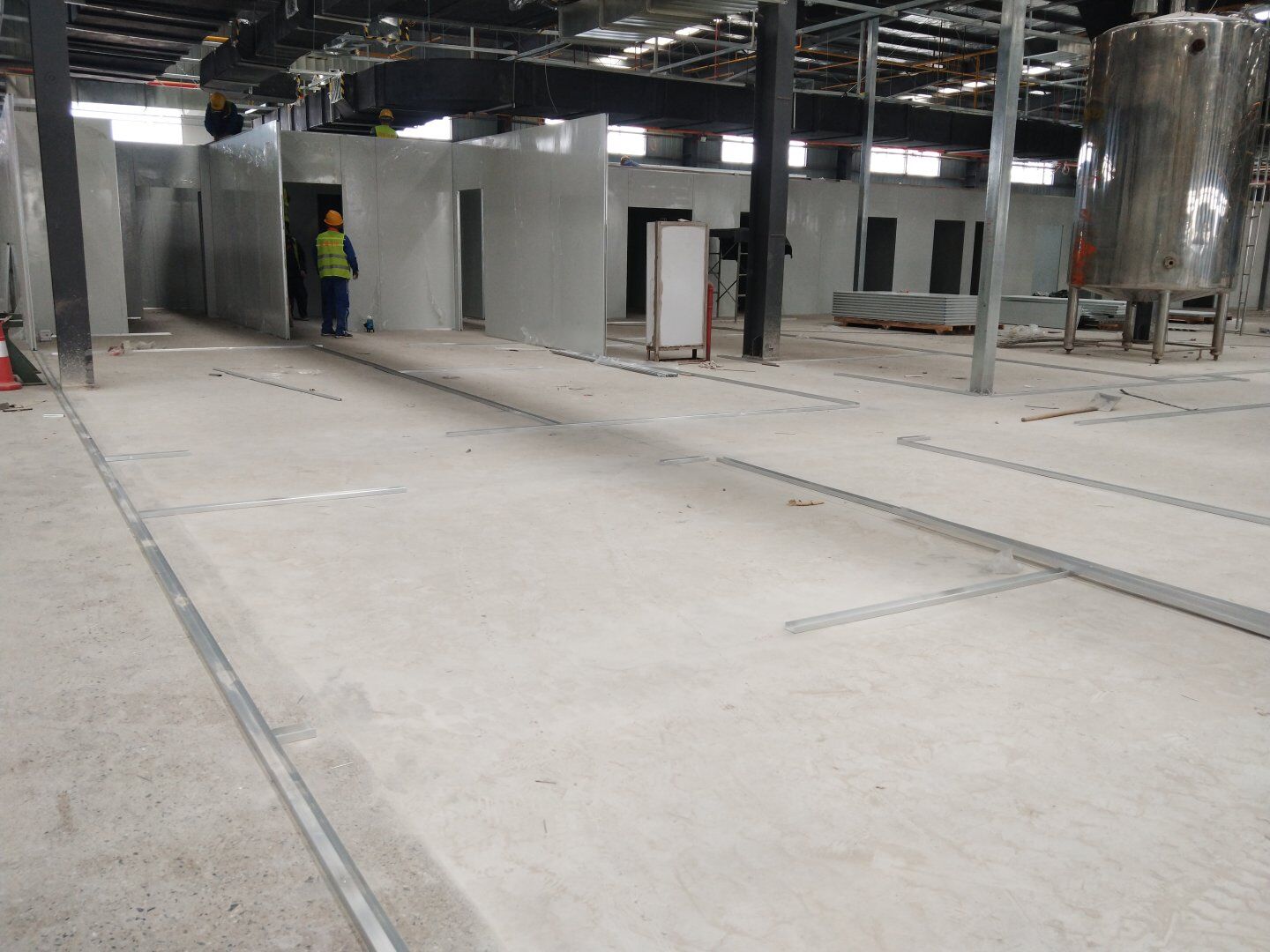 1,彩鋼隔墻完成40%; 2,彩鋼板頂板完成20%。