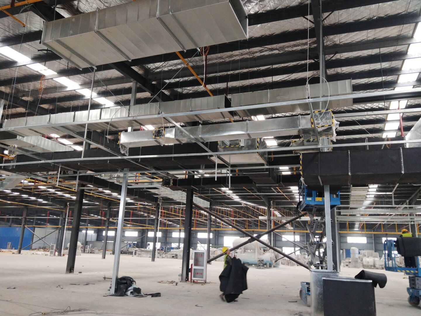 1,回風(fēng)夾道包板完成,圓弧完成50%; 2,風(fēng)管支管吊裝完成60%; 飲片車(chē)間: 1,二次鋼構(gòu)完成60%。