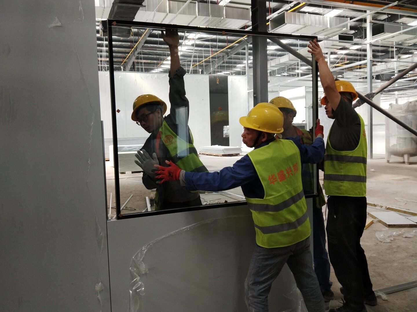 1,潔凈雙層觀(guān)察窗安裝完成30%; 2,高效送風(fēng)口頂板定位開(kāi)洞完成25%; 3,內(nèi)圓弧安裝完成20%