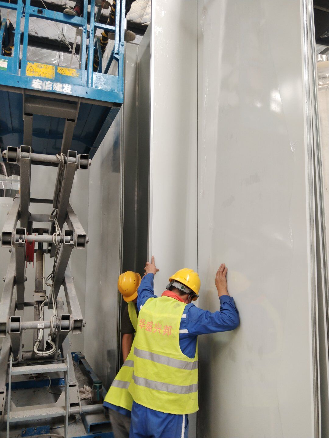 1,除預(yù)留設(shè)備通道外的彩鋼板墻板完成; 2,彩鋼板頂板完成80%。