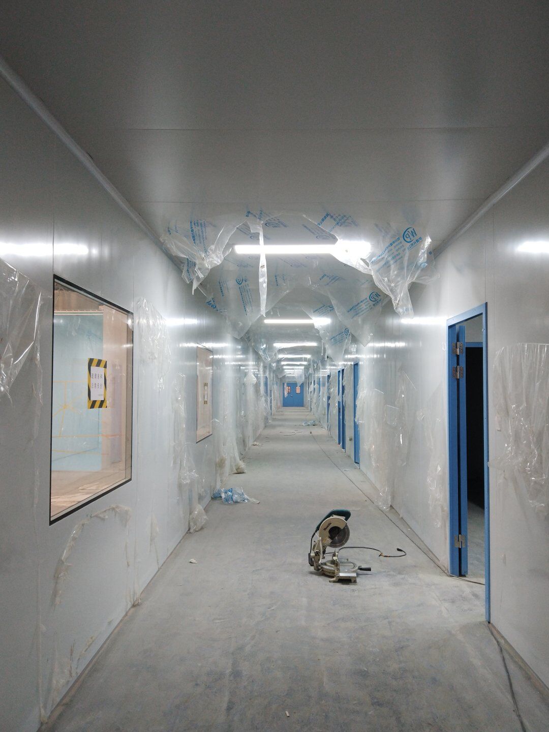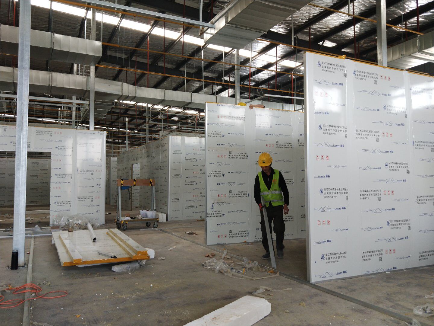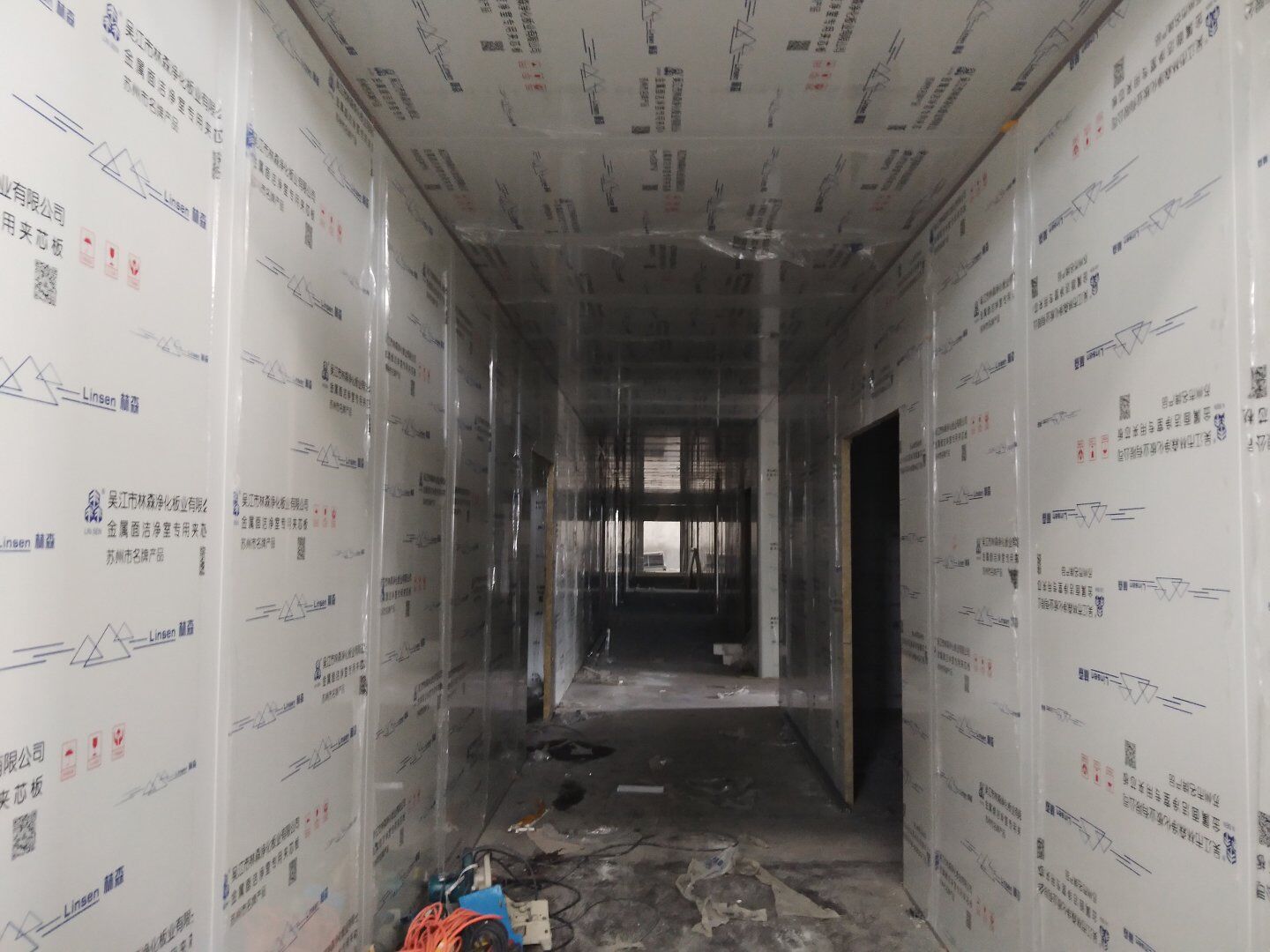 1,彩鋼板墻板完成75% 2,回風(fēng)夾道安裝,撕膜,打膠完成15% 3,潔凈窗安裝完成60%。