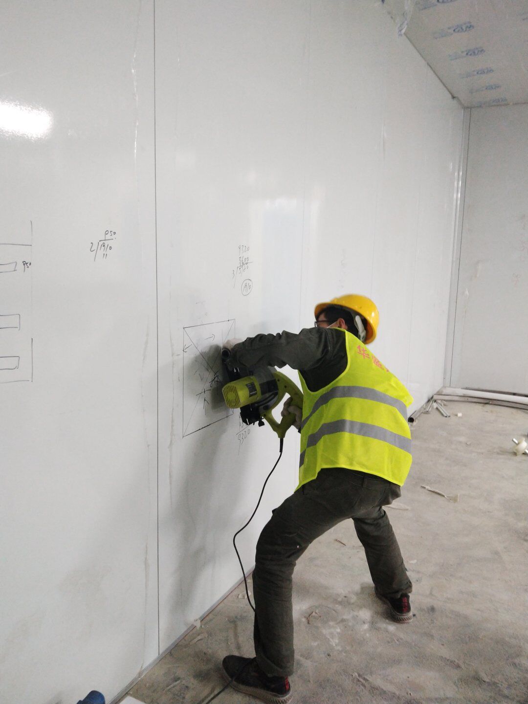 1,潔凈鋼質(zhì)門(mén)安裝完成70% 2,電氣配管穿線(xiàn)完成65%,插座及開(kāi)關(guān)安裝完成75%,照明通電完成30% 3,高效箱保溫完成80%。