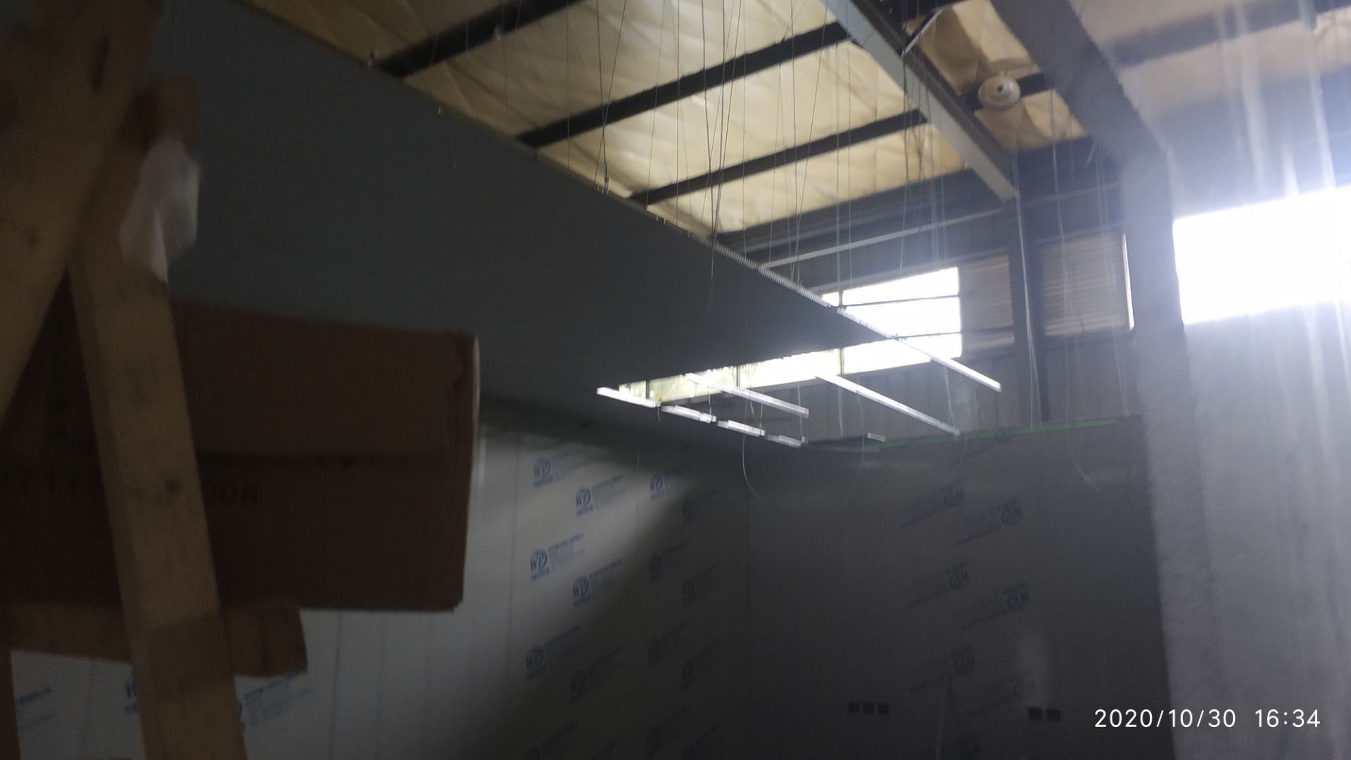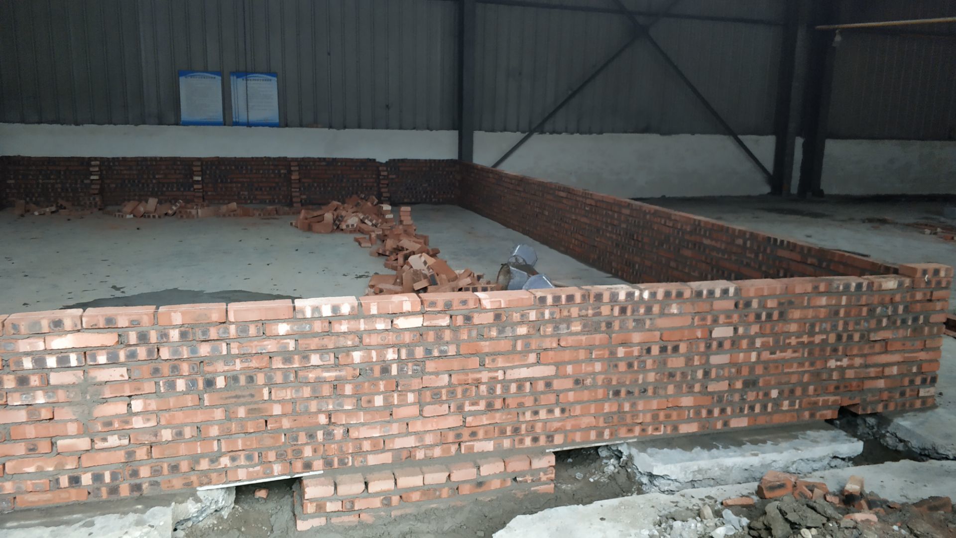 1.地面打磨完成分揀區域和后勤庫房。2.彩鋼組收邊收口,安裝門完成百分之八十。3.照明插座布線安裝完成百分之八十五。 4.凍庫內機組安裝完成。 5.卷簾門安裝完成。