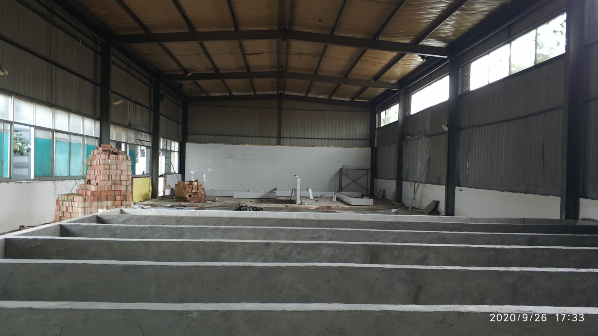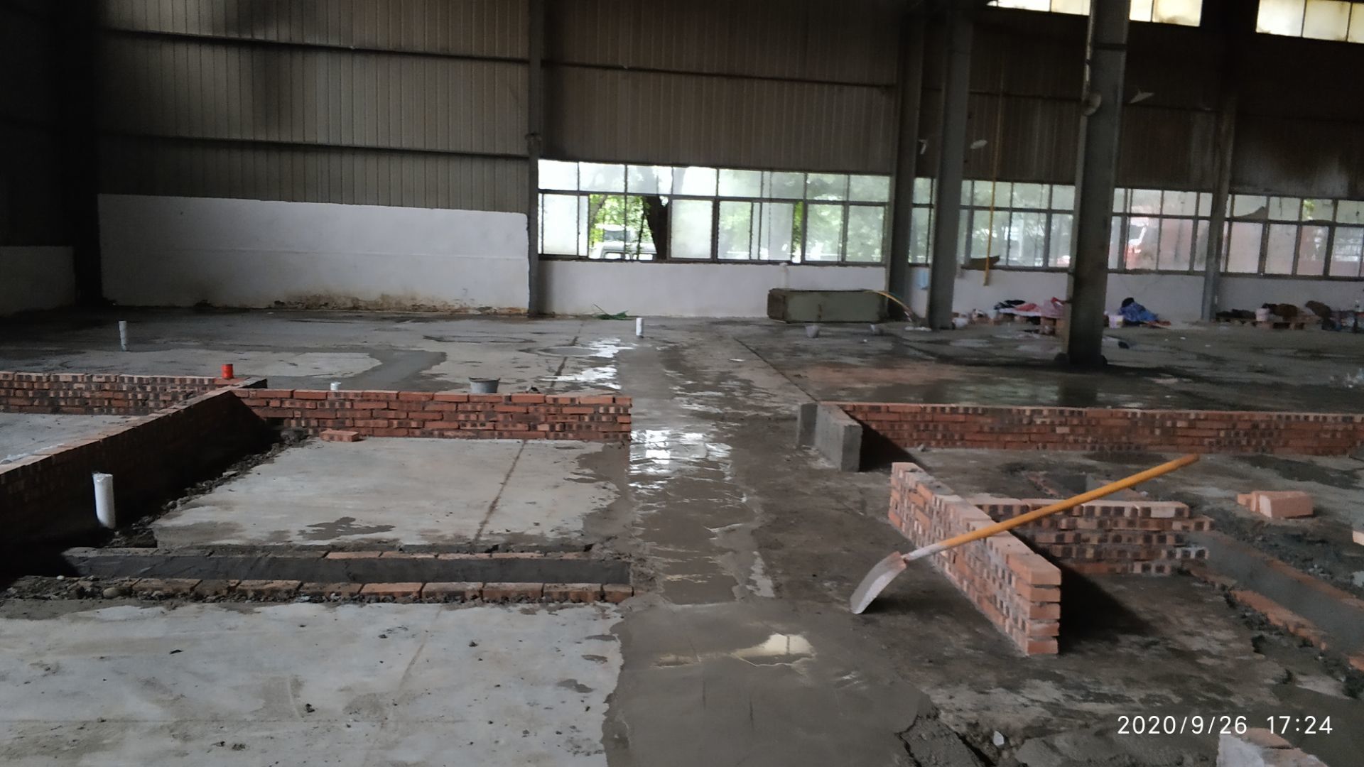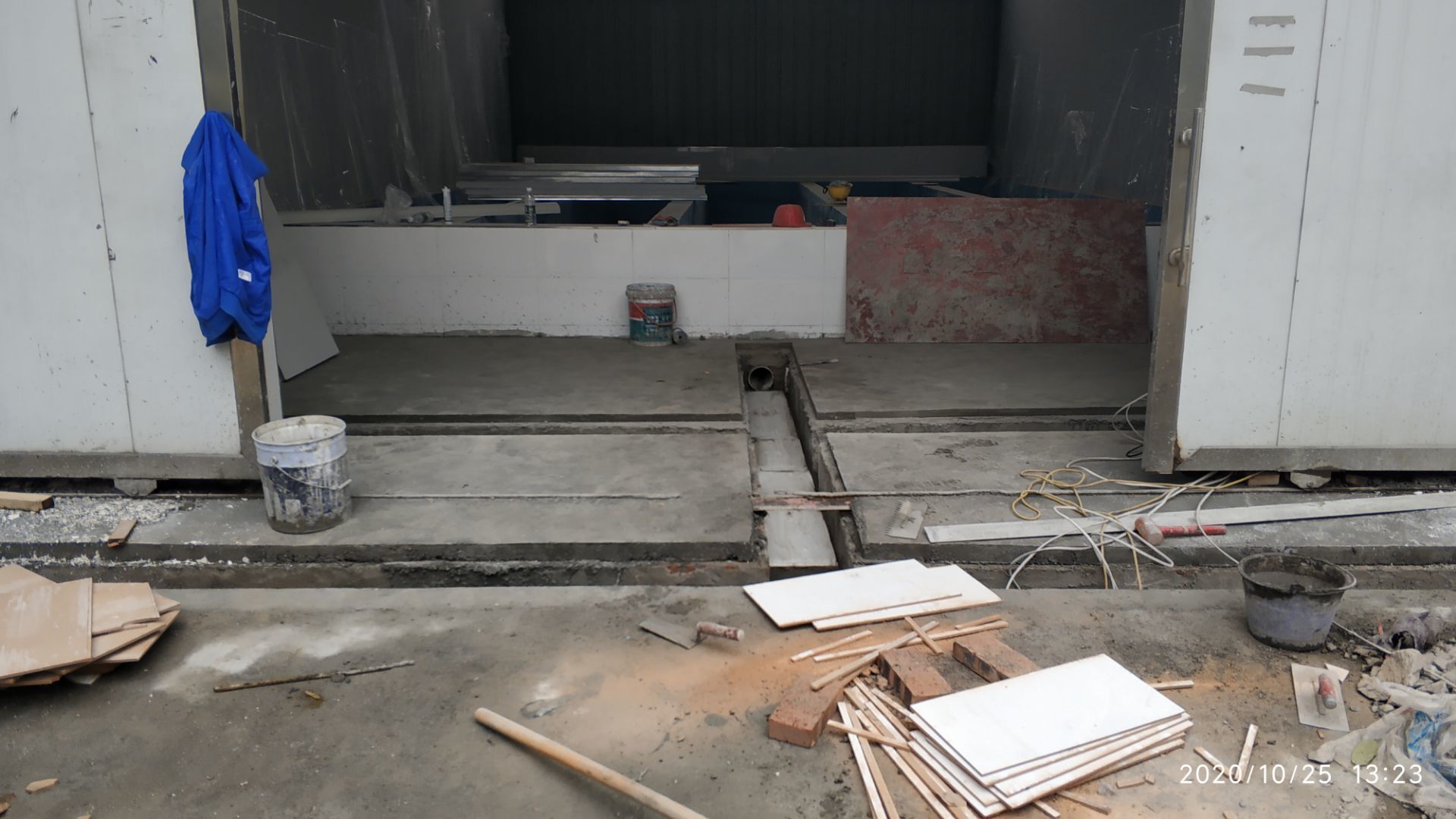 1.凍庫收邊收口完成百分之七十;2、凍庫門安裝完成百分之六十五; 3、生產車間地面鋪裝完成百分之七十; 4、生產車間排水溝貼磚完成。