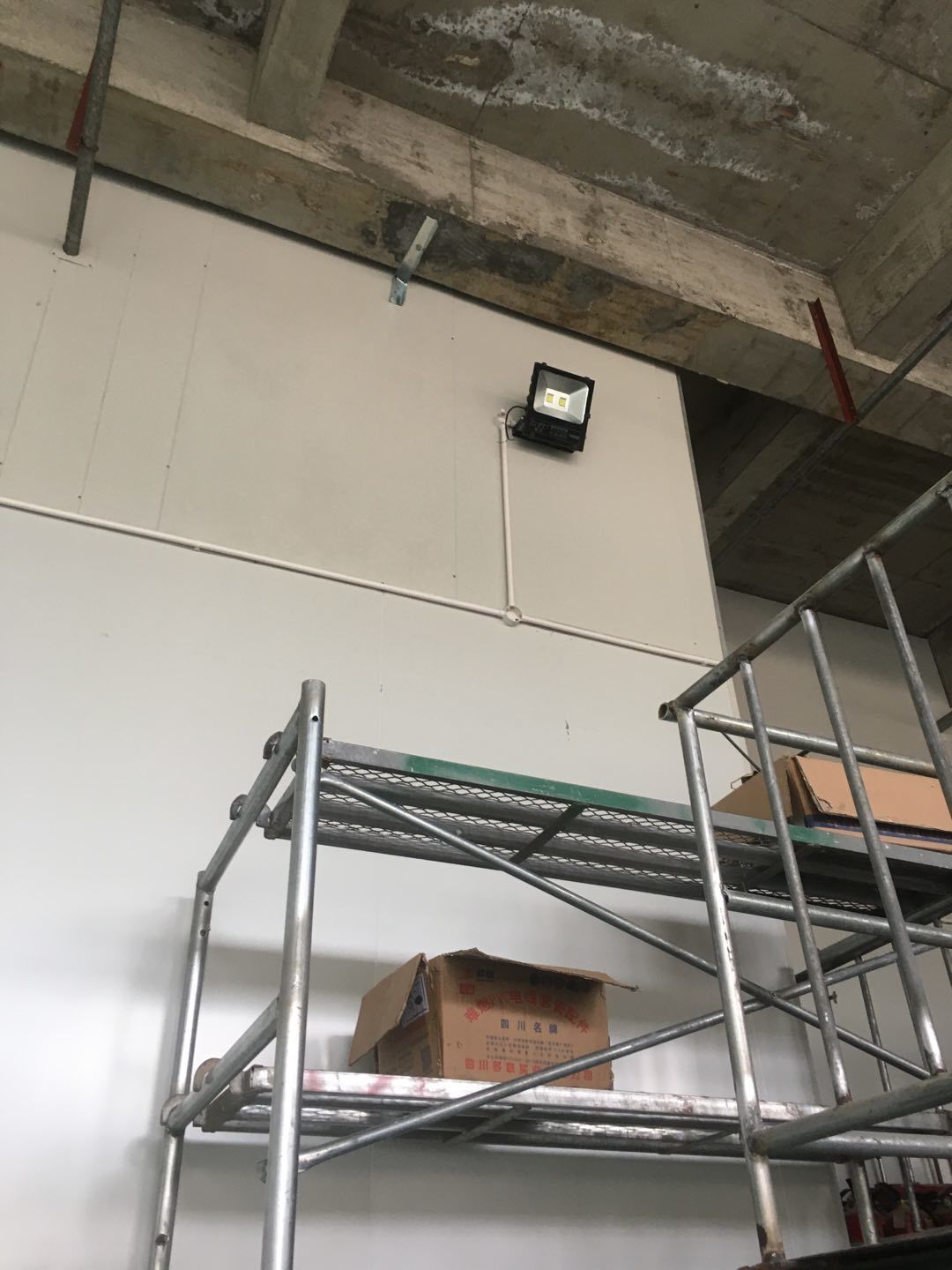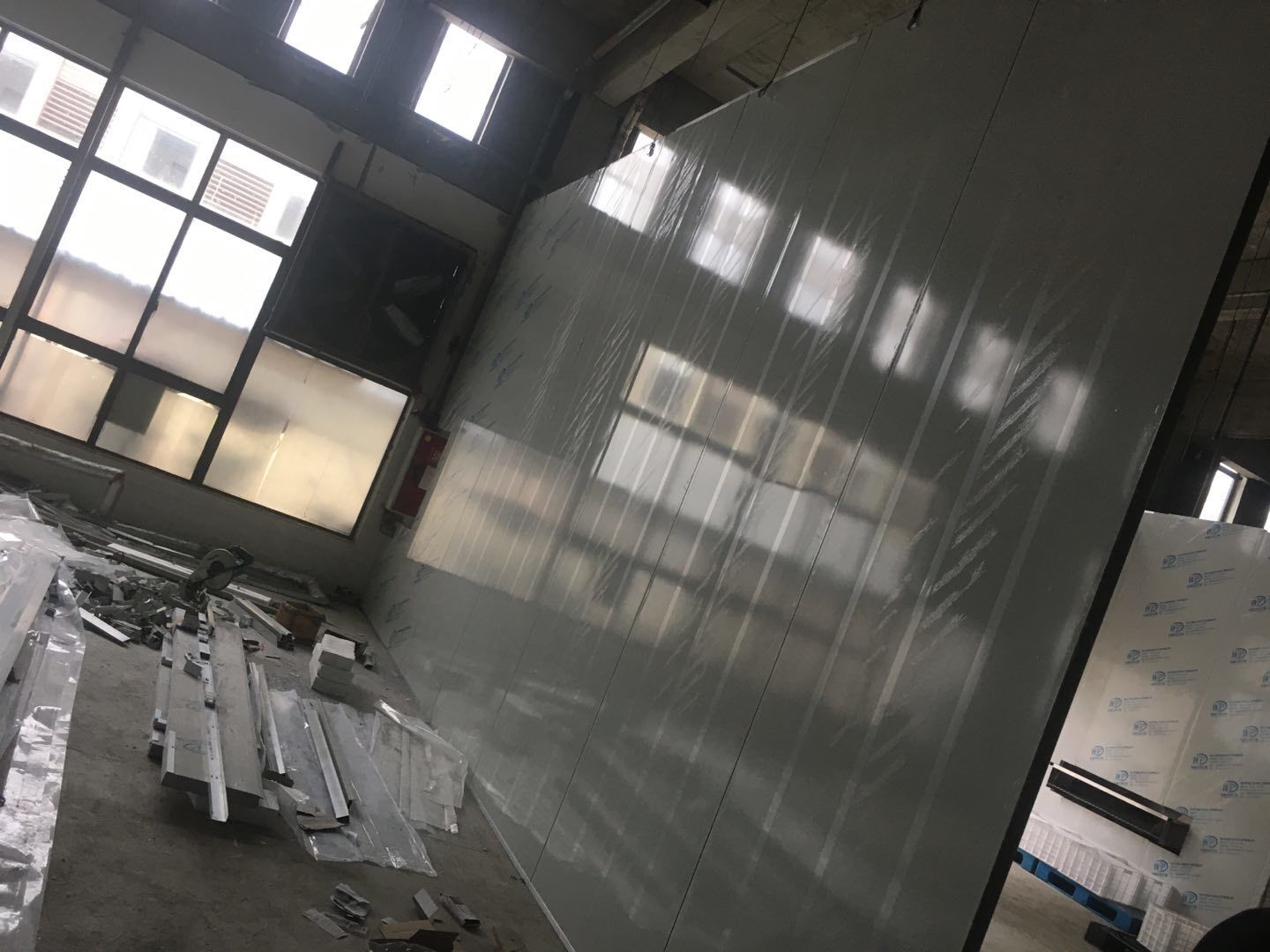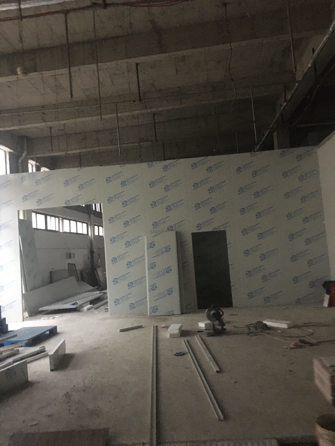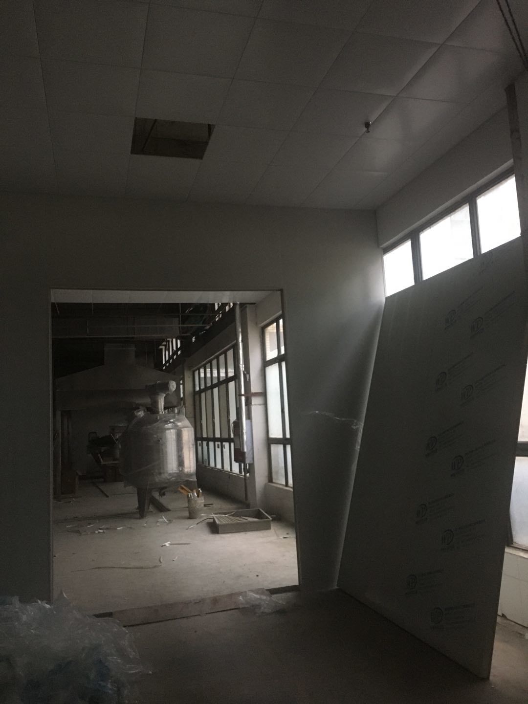 排水溝邊恢復(fù)完成100%;土建原有柱子瓷磚破碎恢復(fù)95%;彩鋼墻板完成100%;原有土建墻開(kāi)門(mén)洞及恢復(fù)完成100%;門(mén)、窗完成100%;水、電完成40%;收尾完成量,撕膜、打密封膠、完成55%。