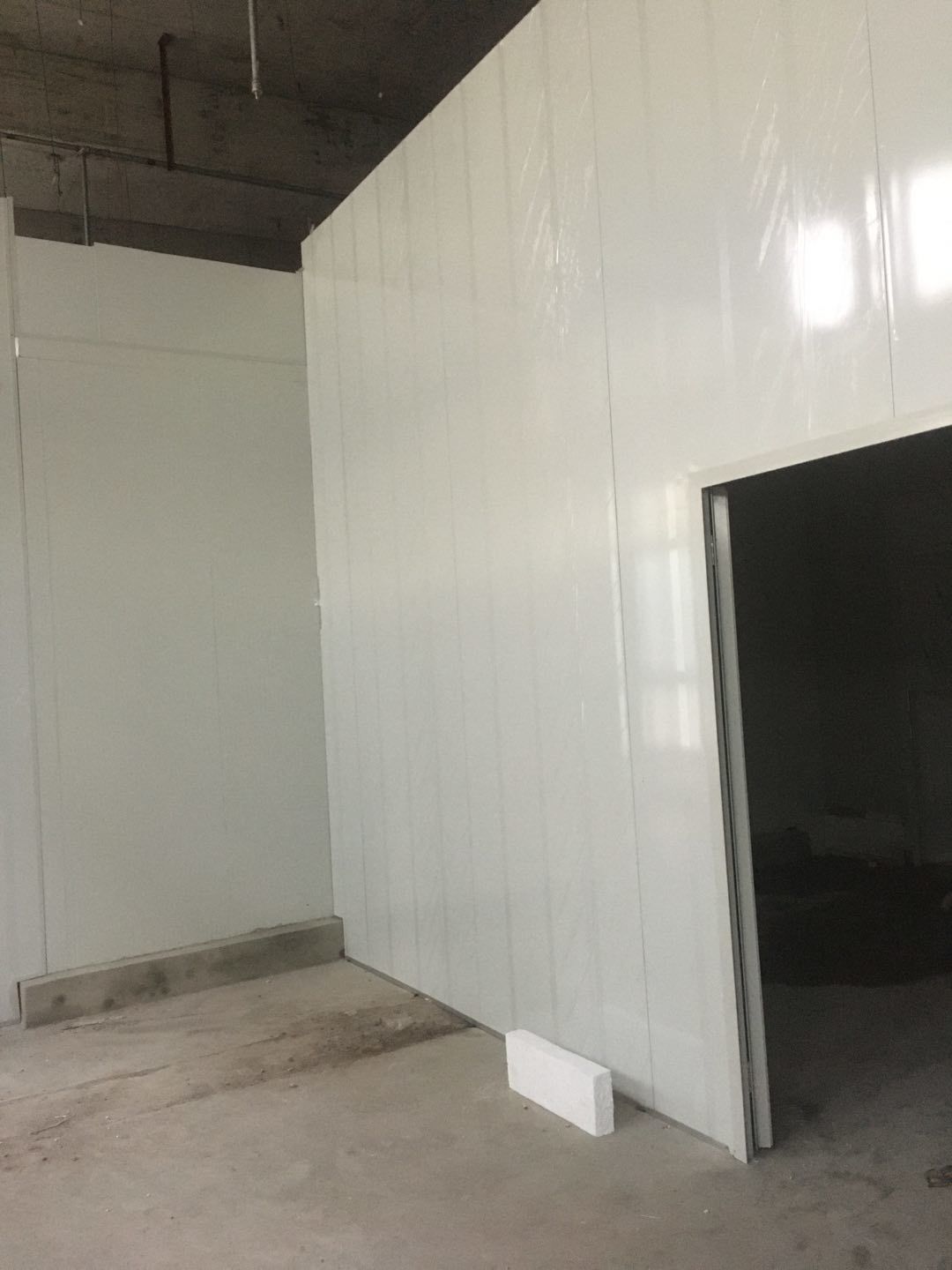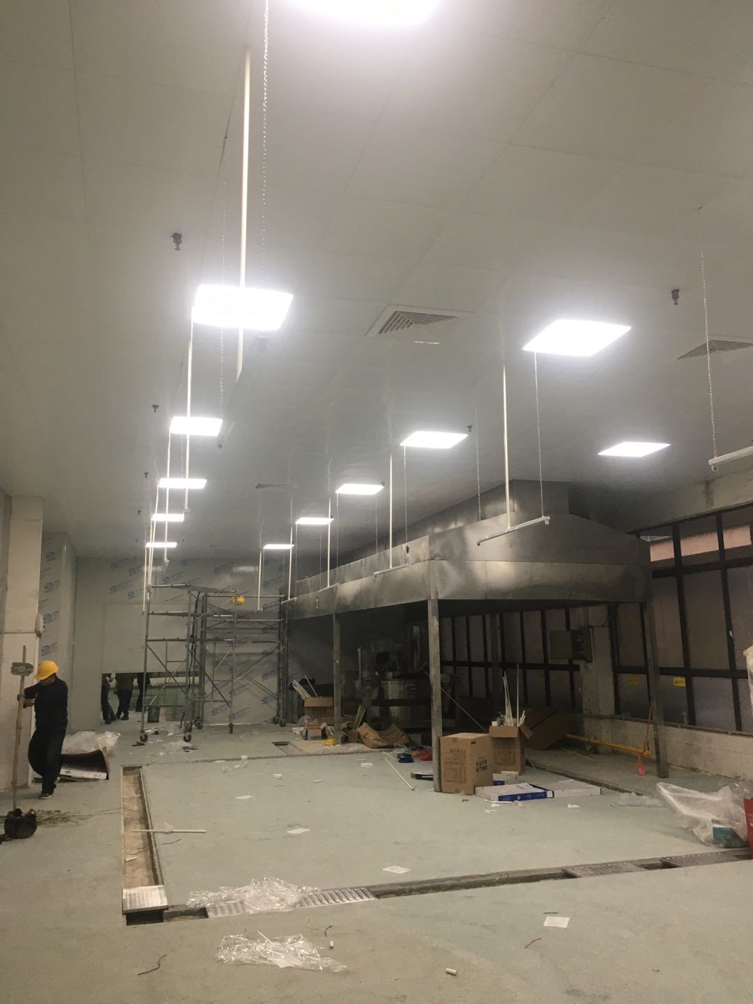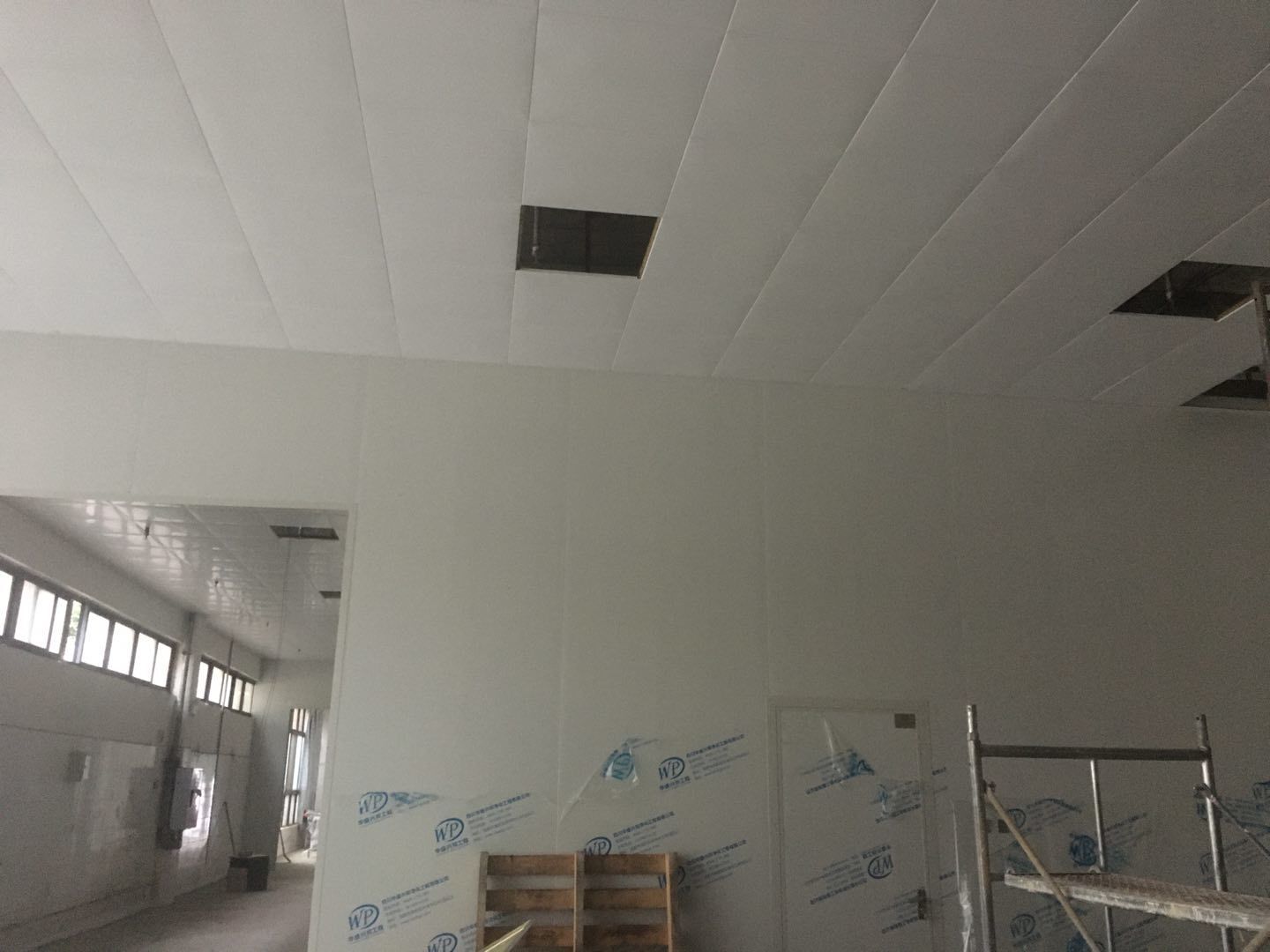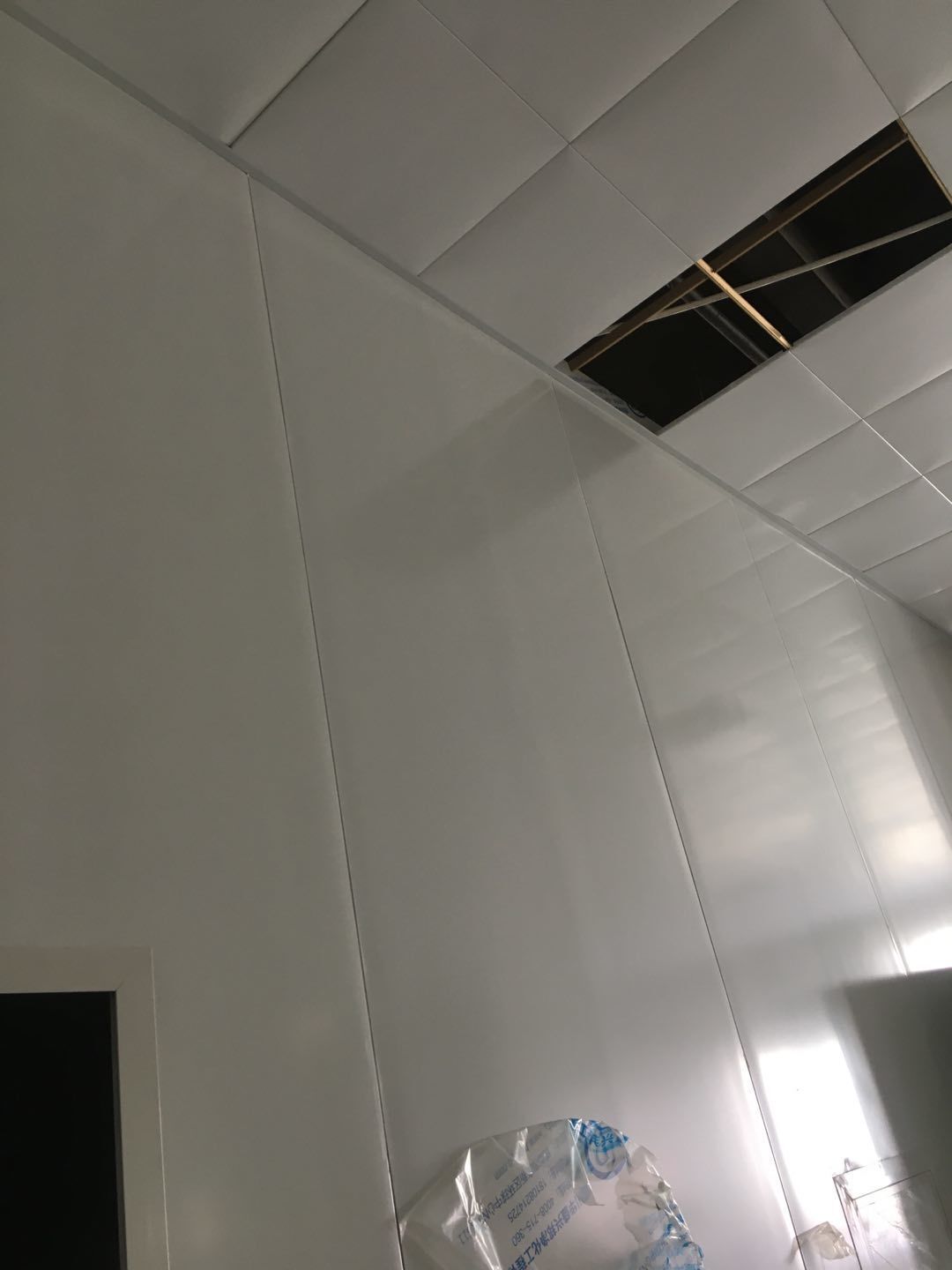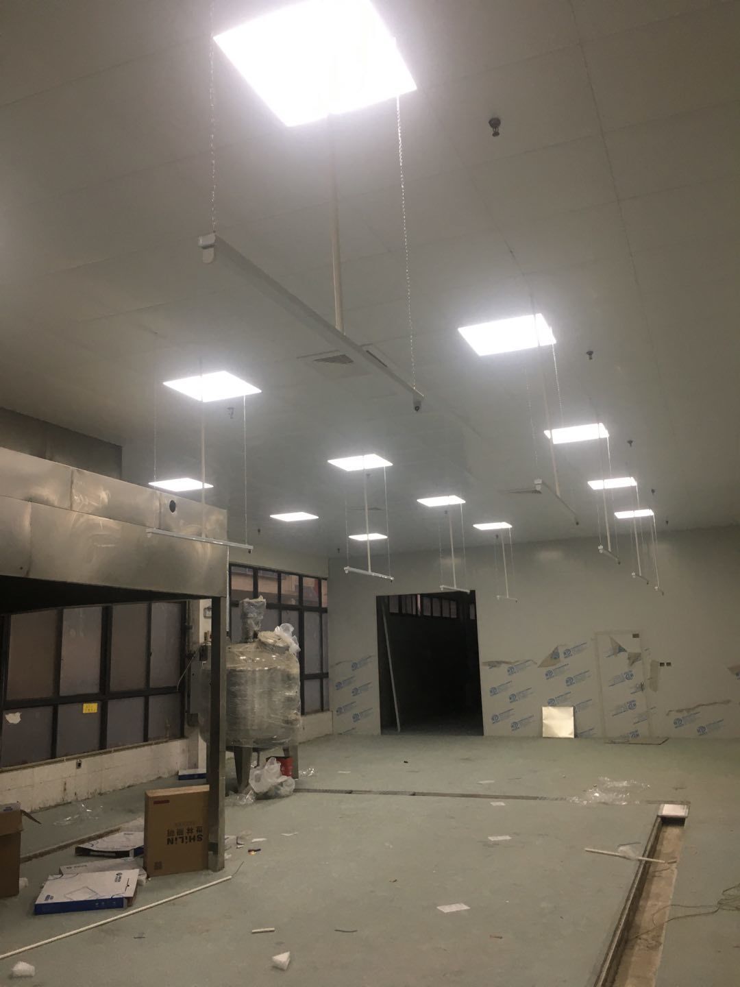 排水溝邊恢復(fù)完成100%;土建原有柱子瓷磚破碎恢復(fù)95%;彩鋼墻板完成100%;原有土建墻開(kāi)門(mén)洞及恢復(fù)完成100%;門(mén)、窗完成100%;水、電完成40%;收尾完成量,撕膜、打密封膠、完成55%。