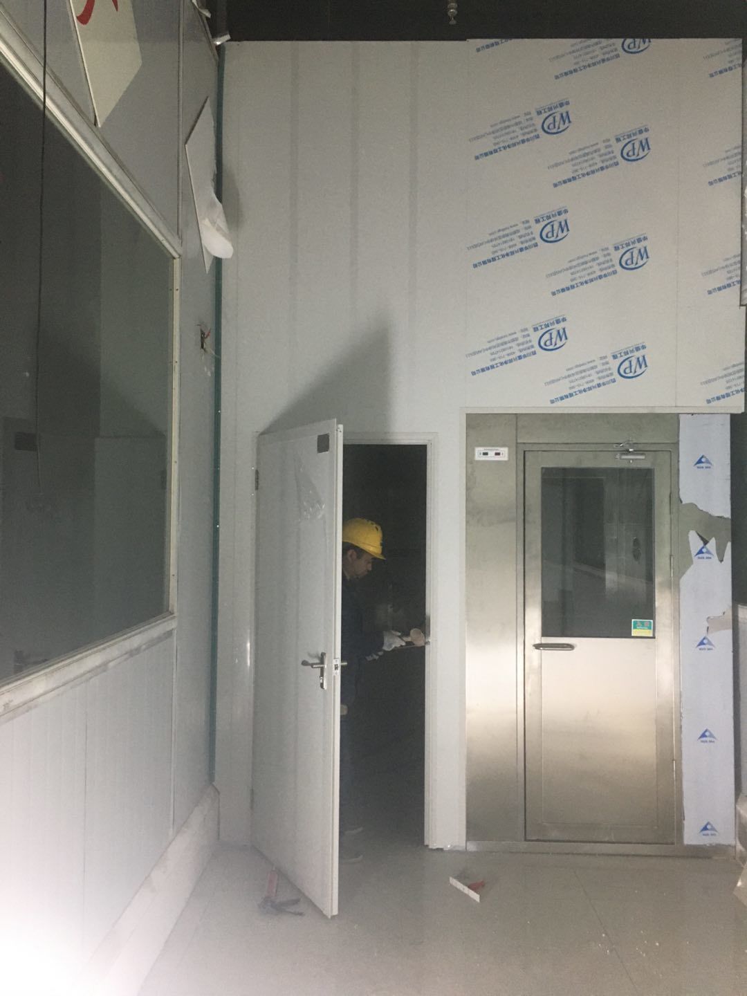 排水溝邊恢復(fù)完成20%,土建原有柱子瓷磚破碎恢復(fù)90%,彩鋼墻板完成50%,原有土建墻開(kāi)門(mén)洞完成60%,門(mén)施工