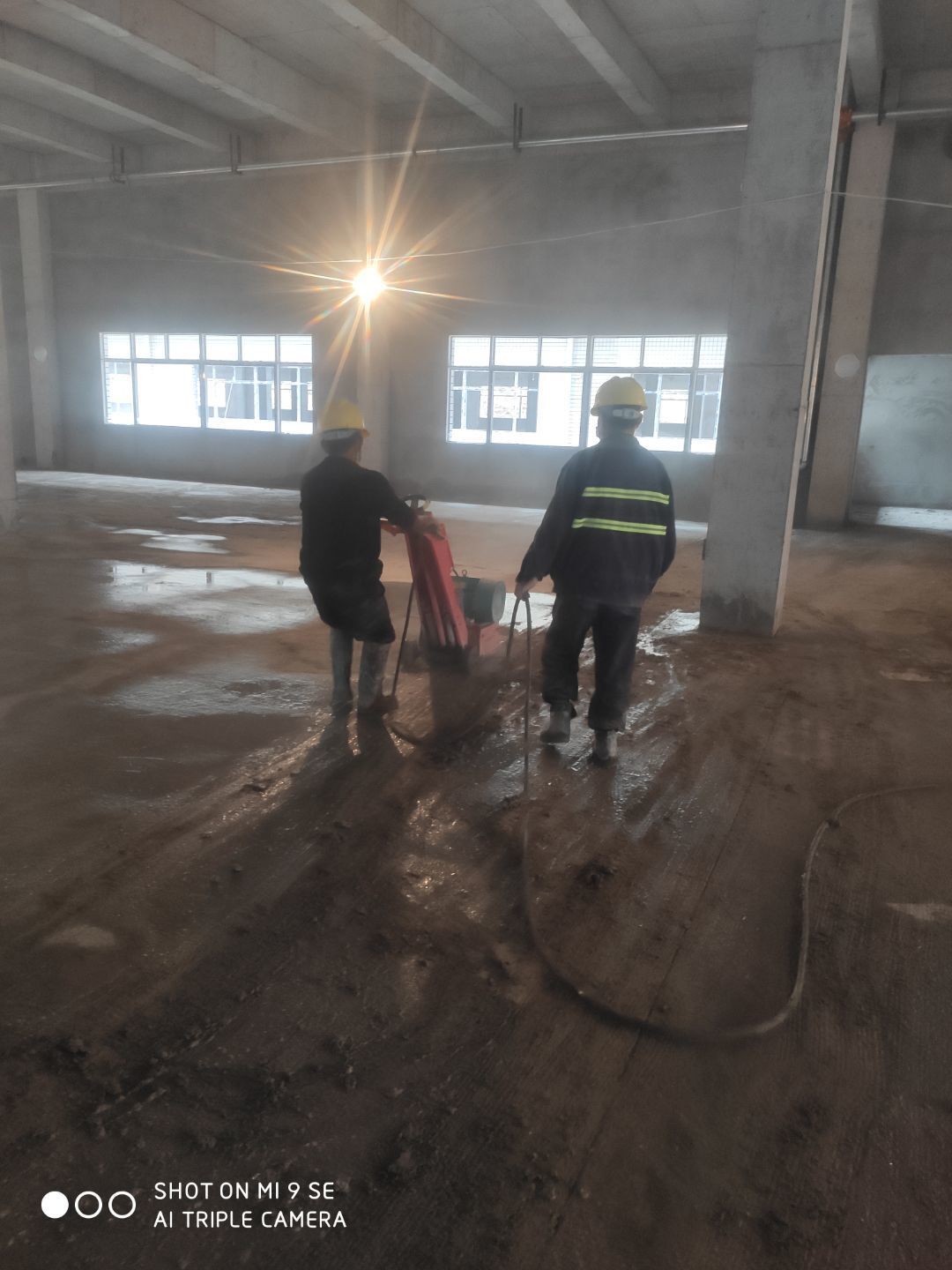 建渣清理完成,排水管安裝,臨時照明電接通