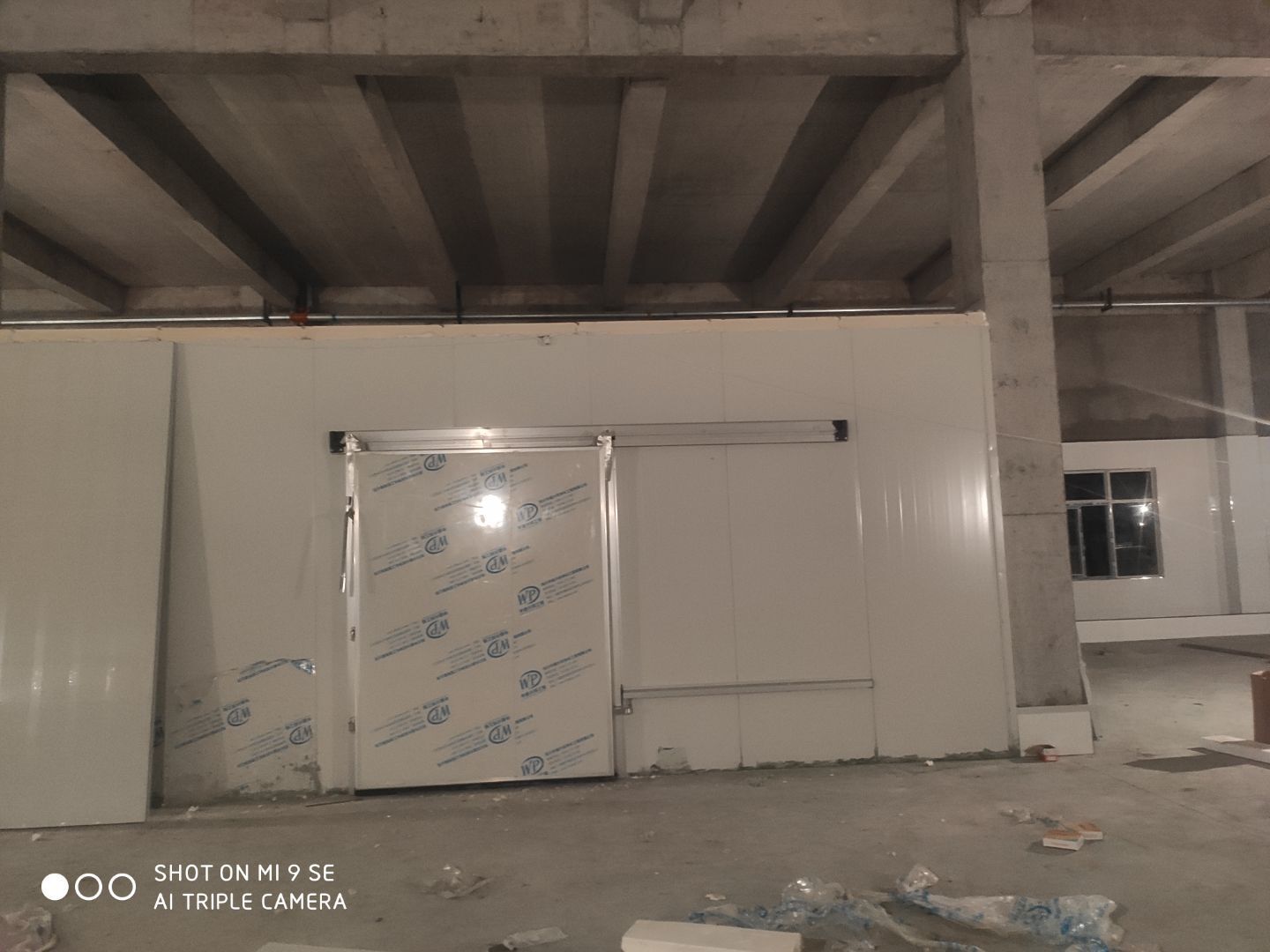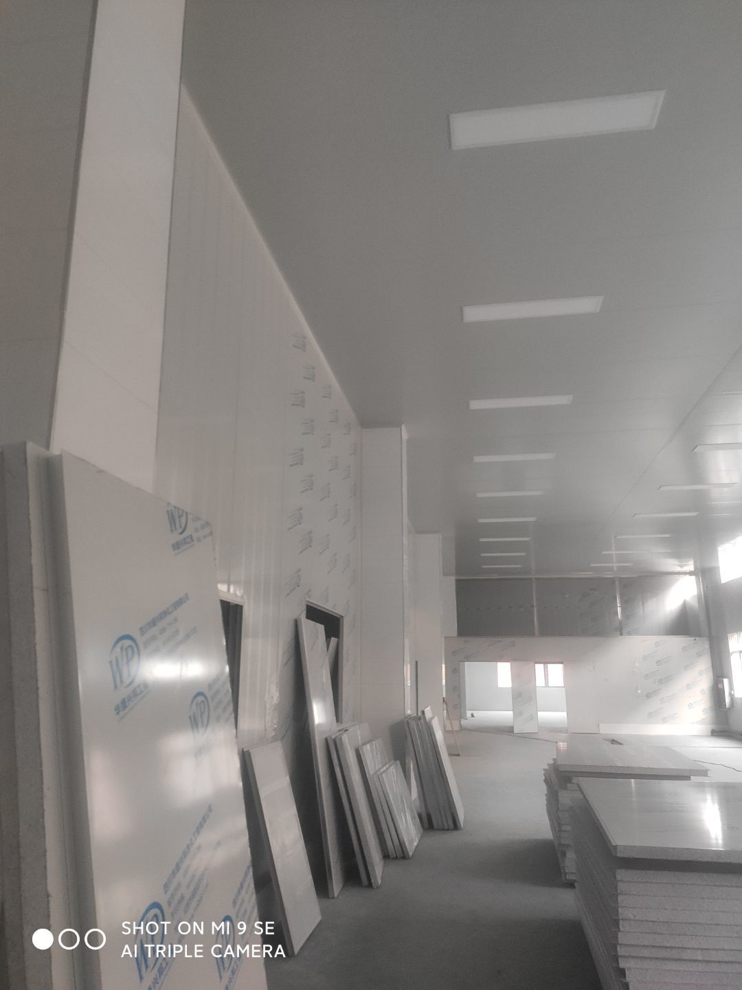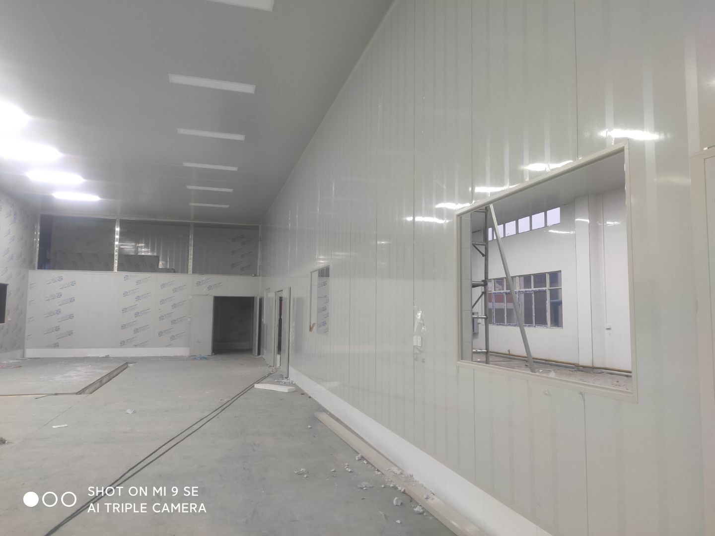 墻板頂板完成百分之九十 凍庫設備安裝完成 車間水電安裝已經開始 乳膠漆進場