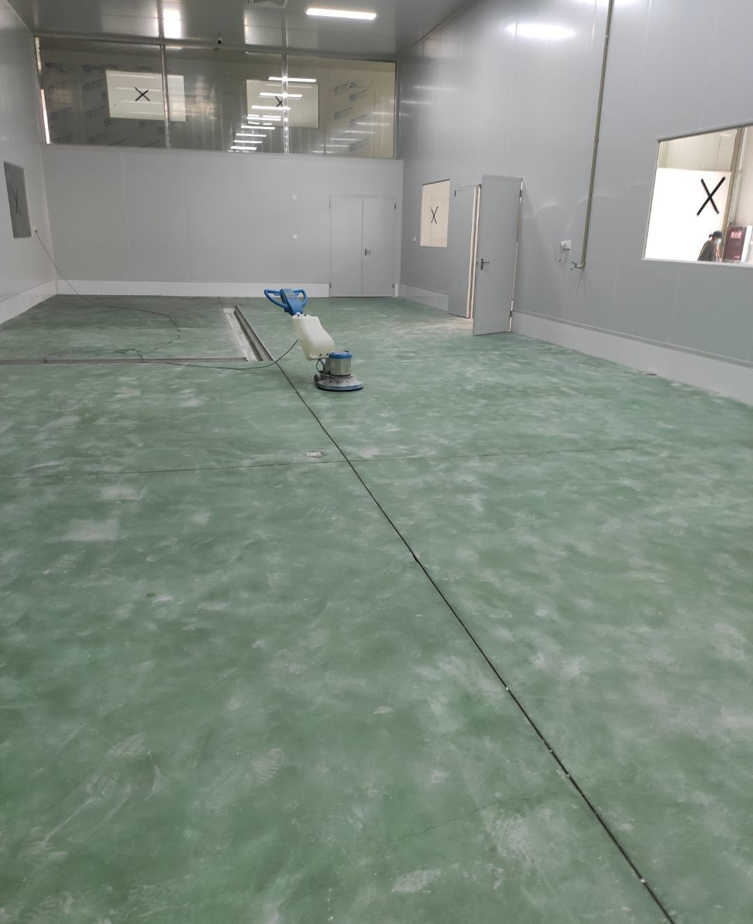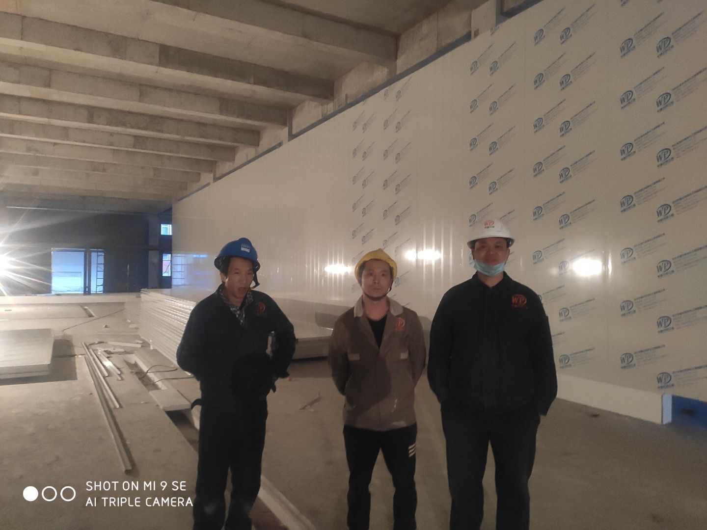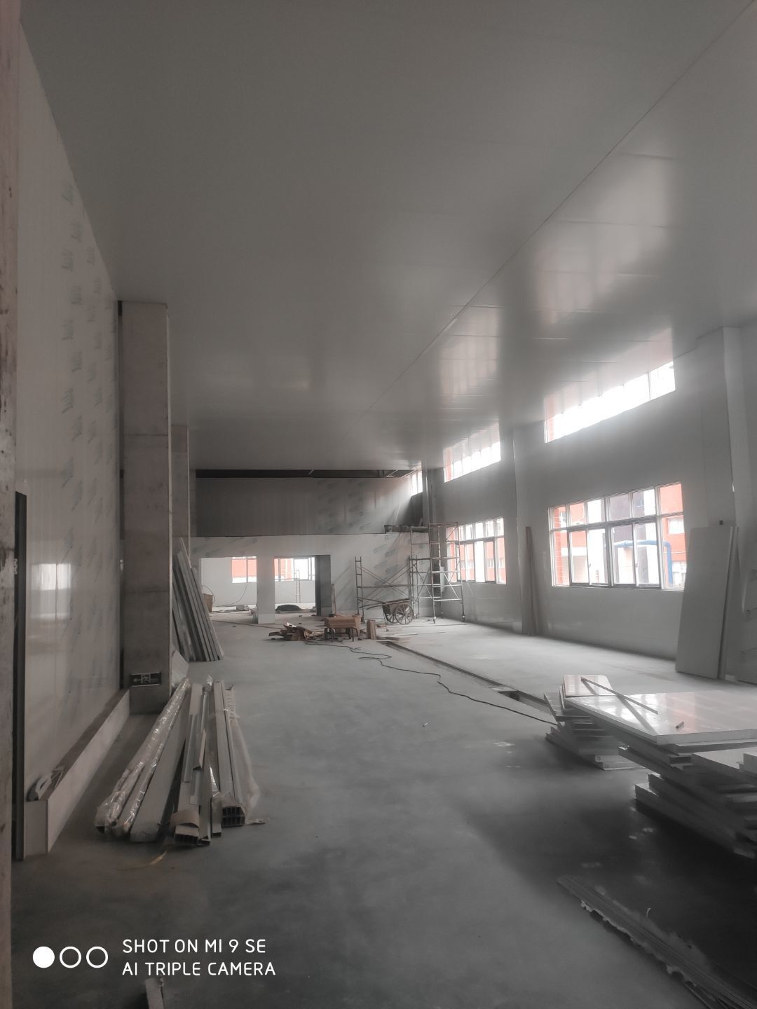 墻板頂板完成百分之九十 凍庫設備安裝完成 車間水電安裝已經開始 乳膠漆進場