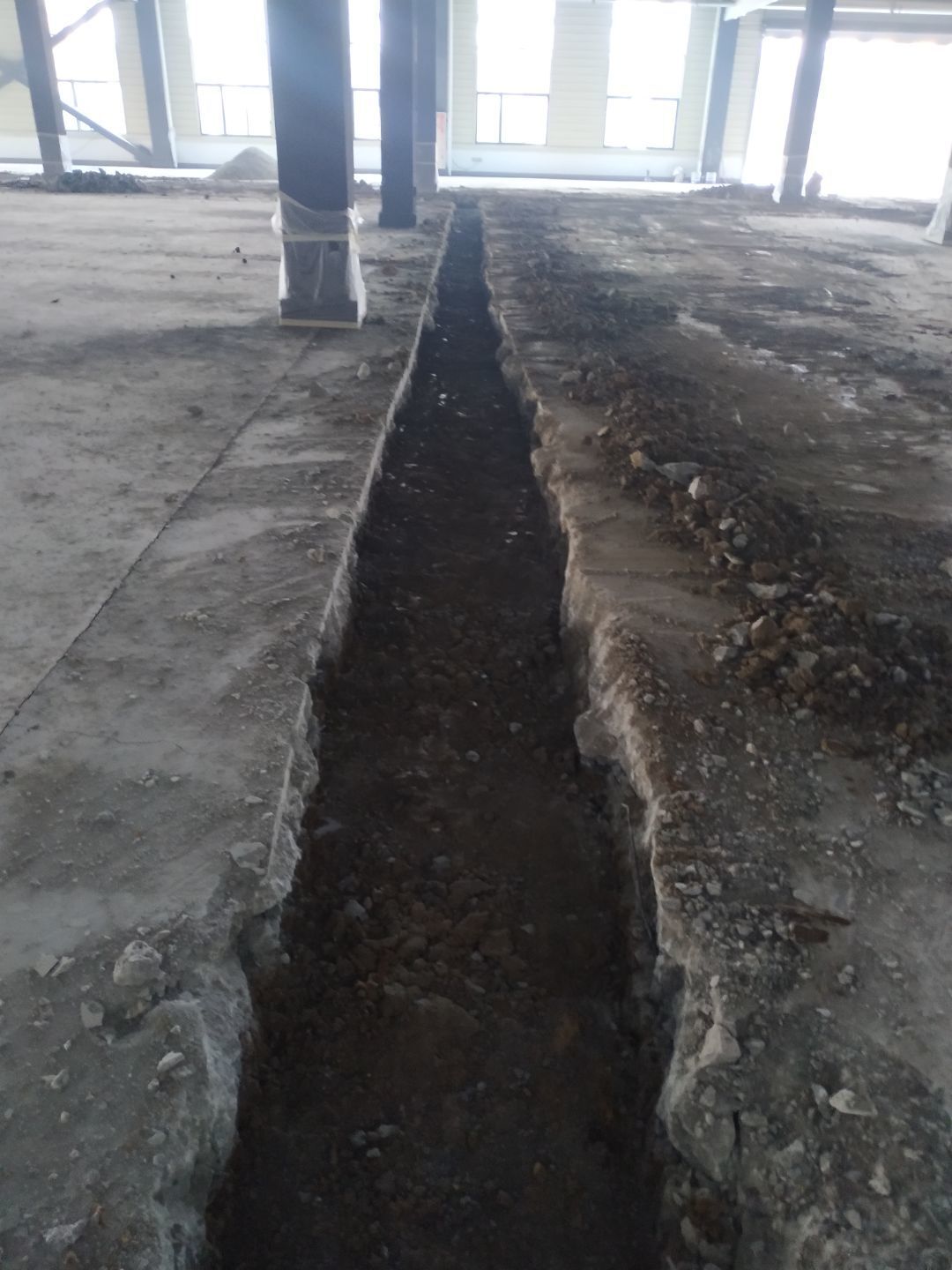 車間安裝現場臨時配電箱和臨時用水,車間排水溝放線,切縫完成40%。