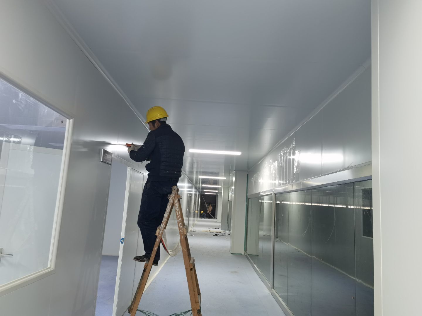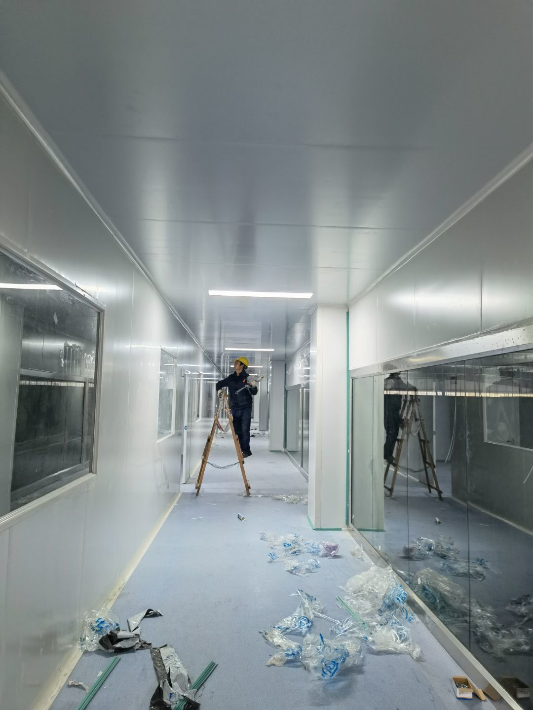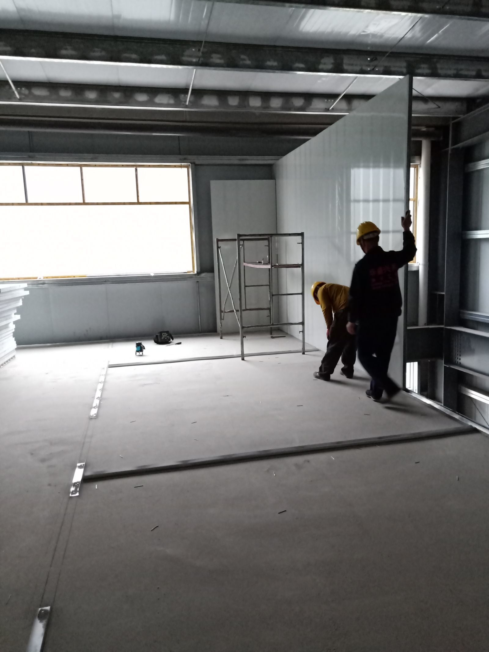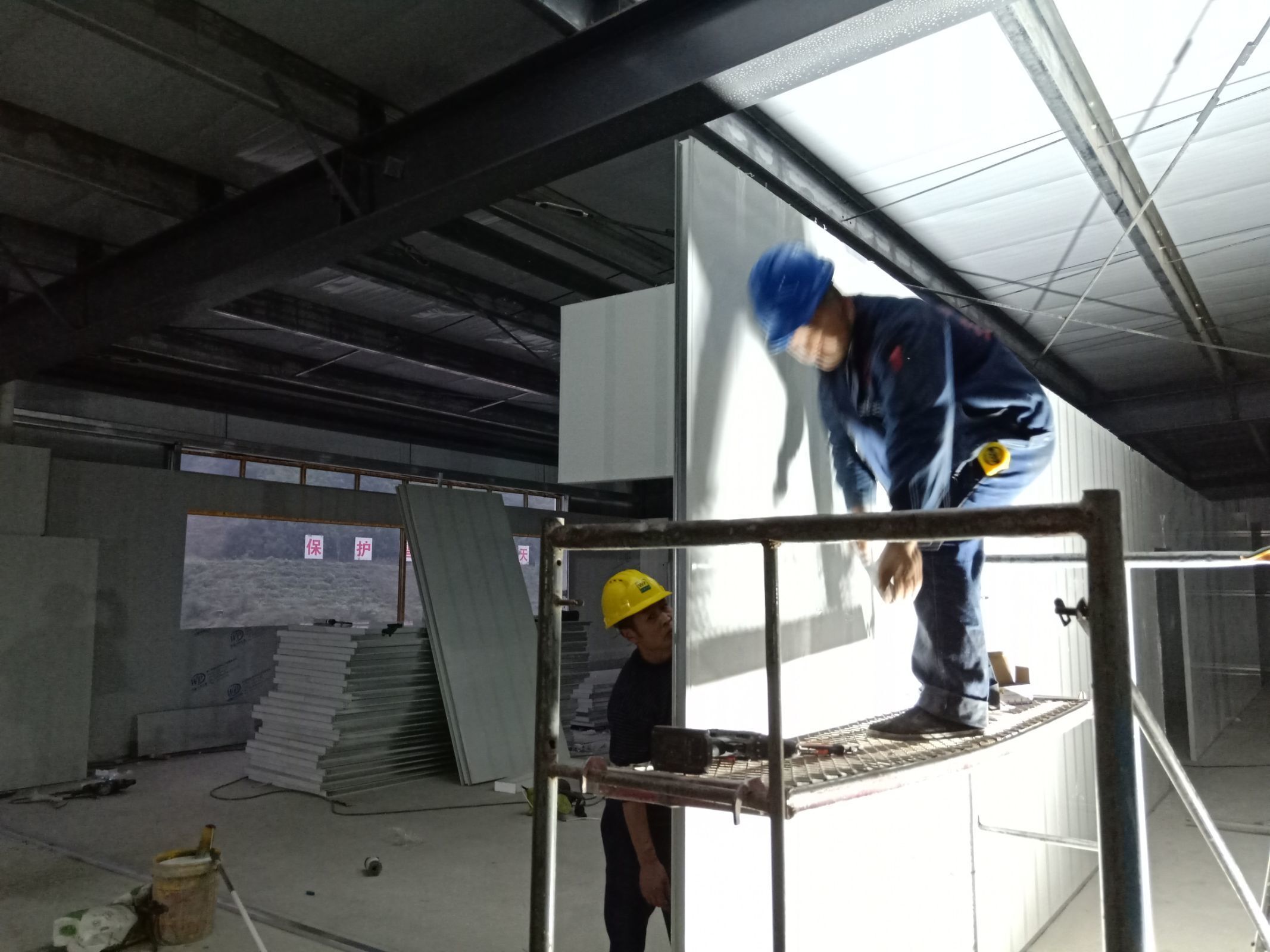 1. 3號廠房實驗室辦公室區(qū)域pvc地板鋪貼完成。 2. 3廠房參觀通道玻璃框架焊接完成。 3. 3號廠房地面固化完成百分之98。 4. 3號廠房實驗室辦公室區(qū)域地面圓弧完成百分之八十。 5. 4號車間彩鋼隔墻板安裝完成。 6. 4號車間殺菌間,中央廚房,吊頂完成。 7. 4號車間殺菌間配電線路完成,中央廚房燈具配電線路安裝完成, 8. 4號車間開關(guān),插座,線盒開洞完成,插座面板安裝完成百分之80。 9. 4號車間T鋁安裝完成百分之80。 10. 4號車間門框安裝完成百分之80。